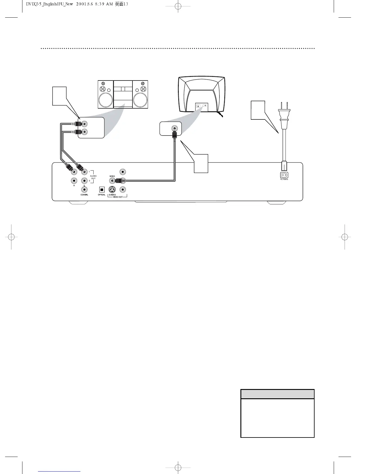 (VIDEO OUT) jack of the DVD Player and to the TV’s