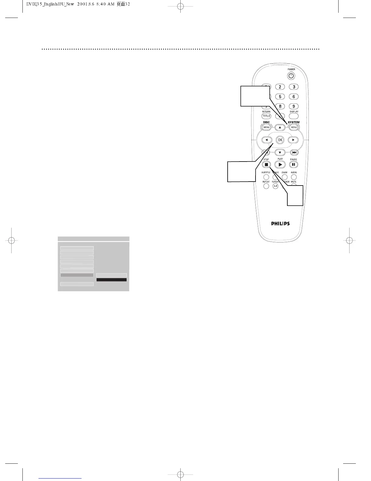 Press SYSTEM MENU to remove the DVD Player menu.