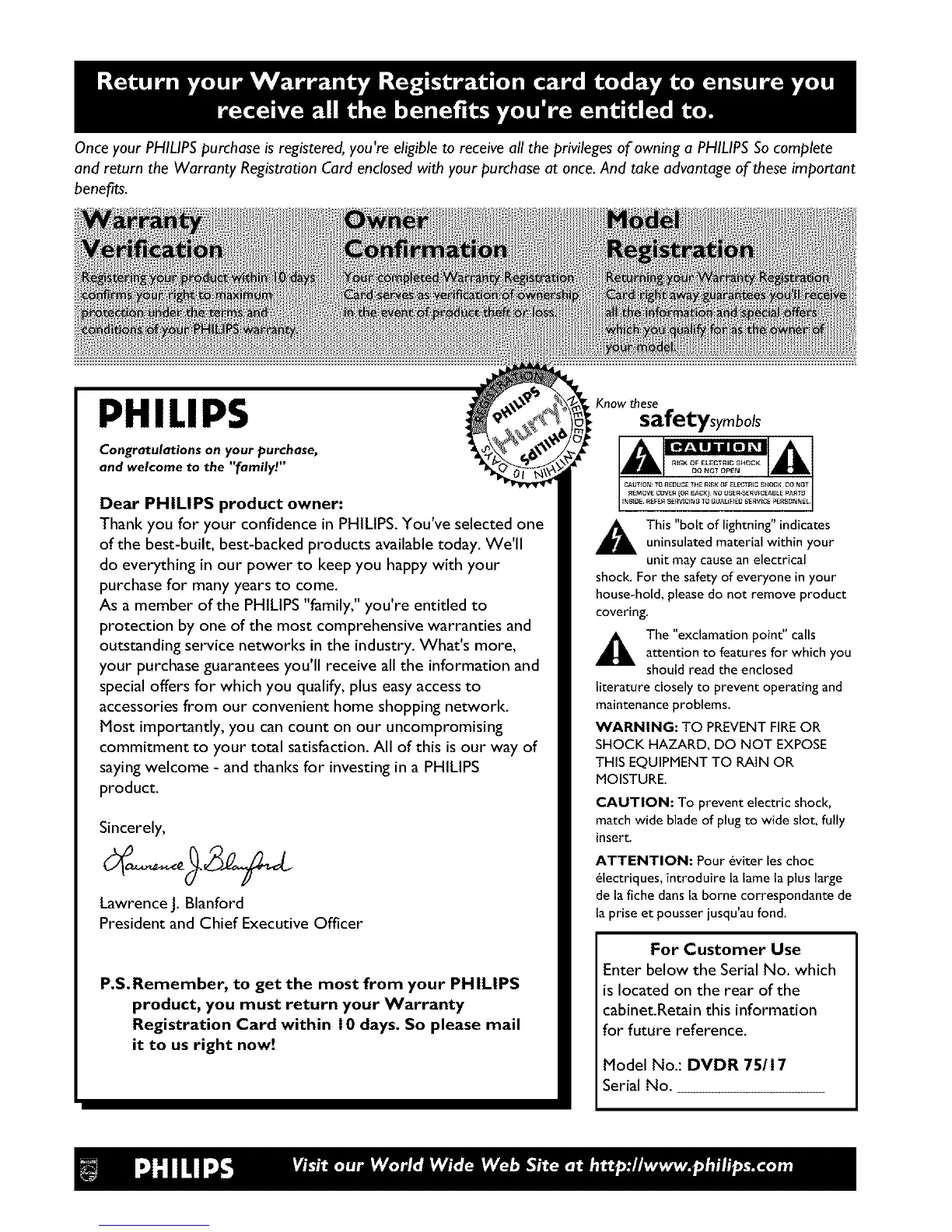 Once your PHILIPS purchase is registered, you're eligible to receive all the privileges of owning a PHILIPS So complete
