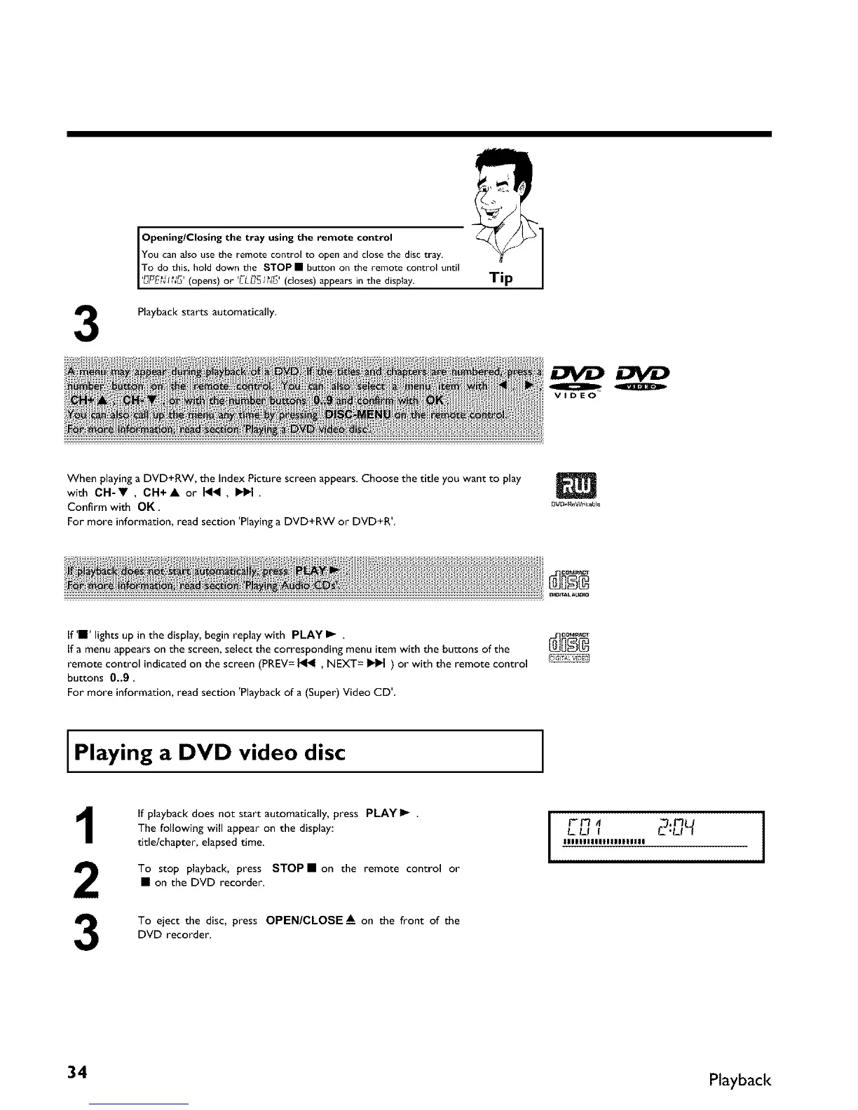 For more information, read section 'Playing a DVD+RW or DVD+R'