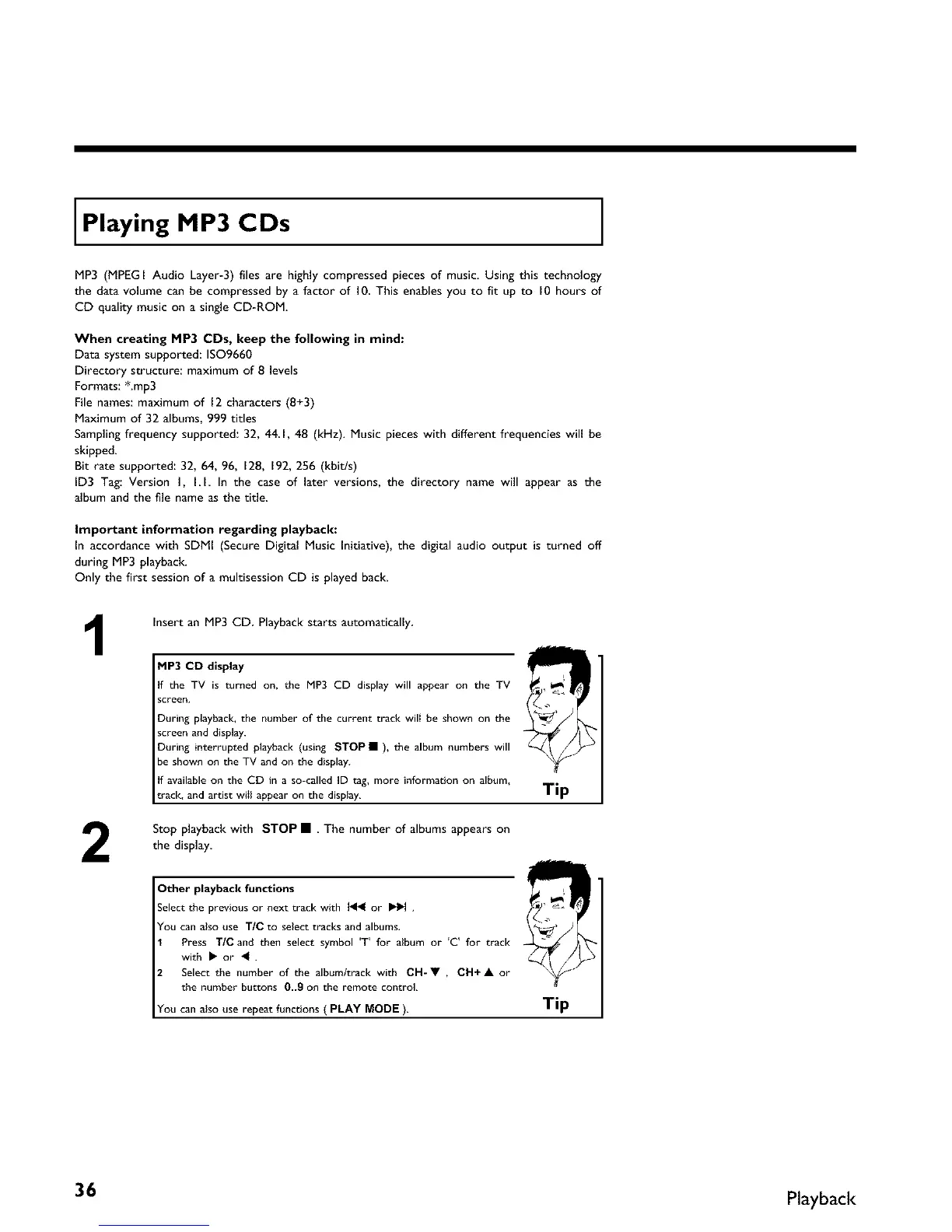 1 Press TIC and then select symbol 'T' for album or 'C' for track