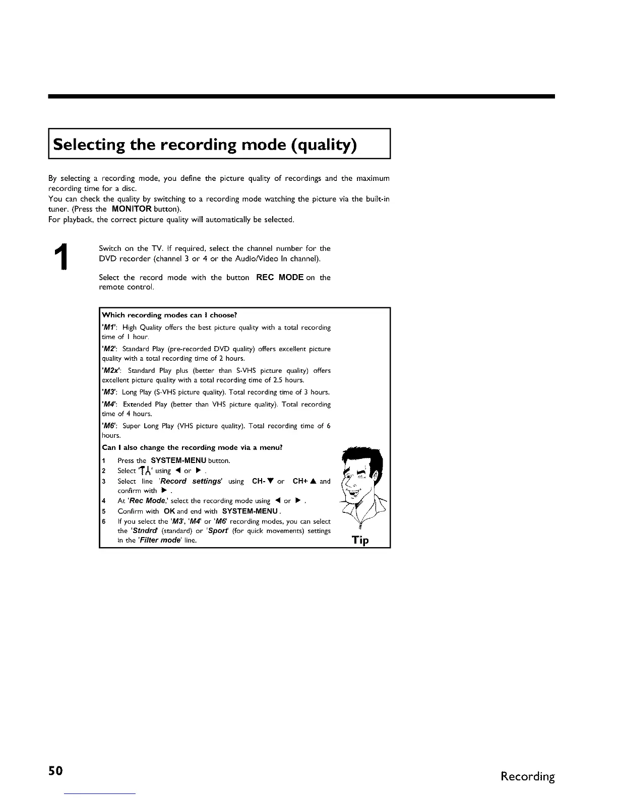 By selecting a recording mode, you define the picture quality of recordings and the maximum