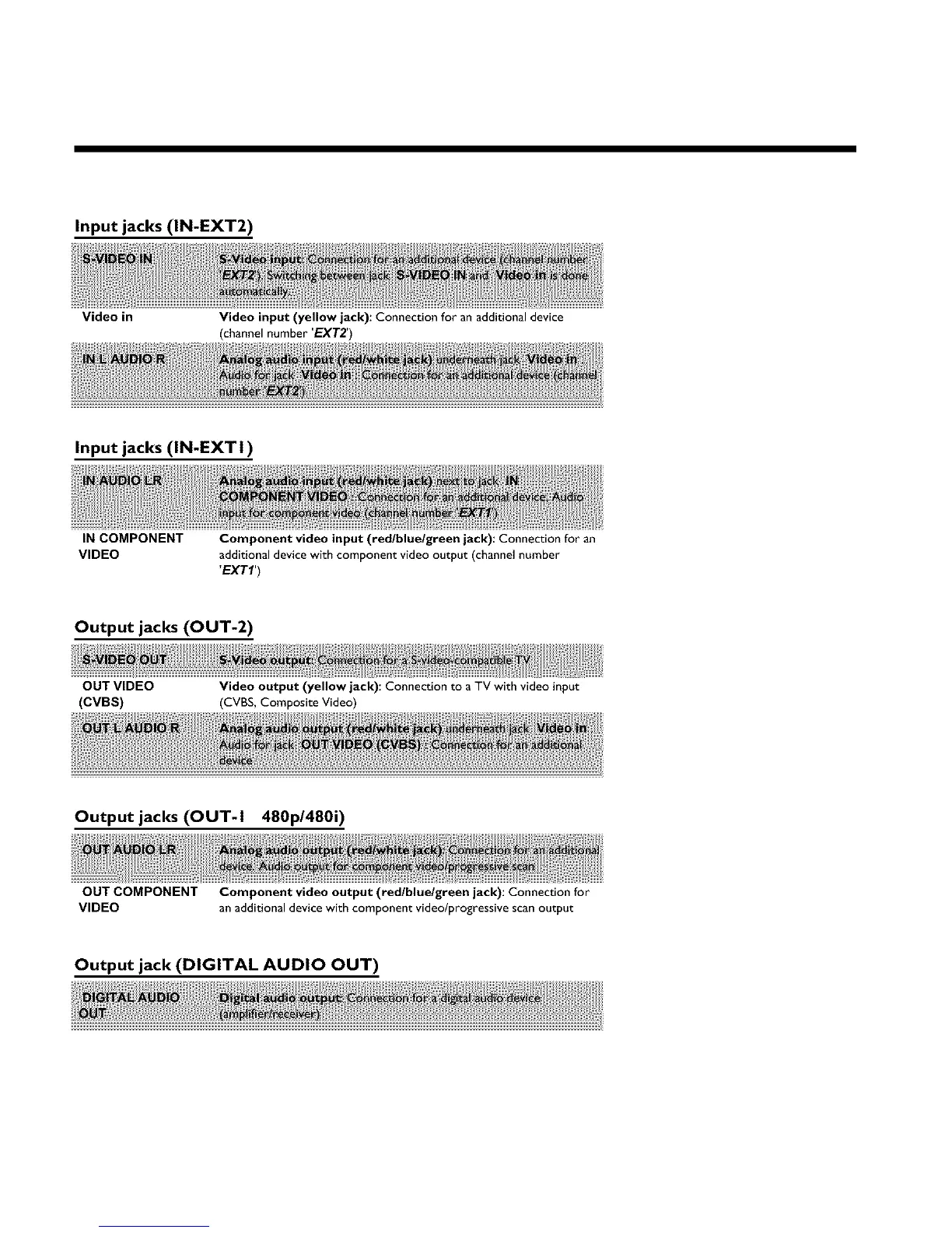 OUT COMPONENT Component video output (redlbluelgreen jack): Connection for