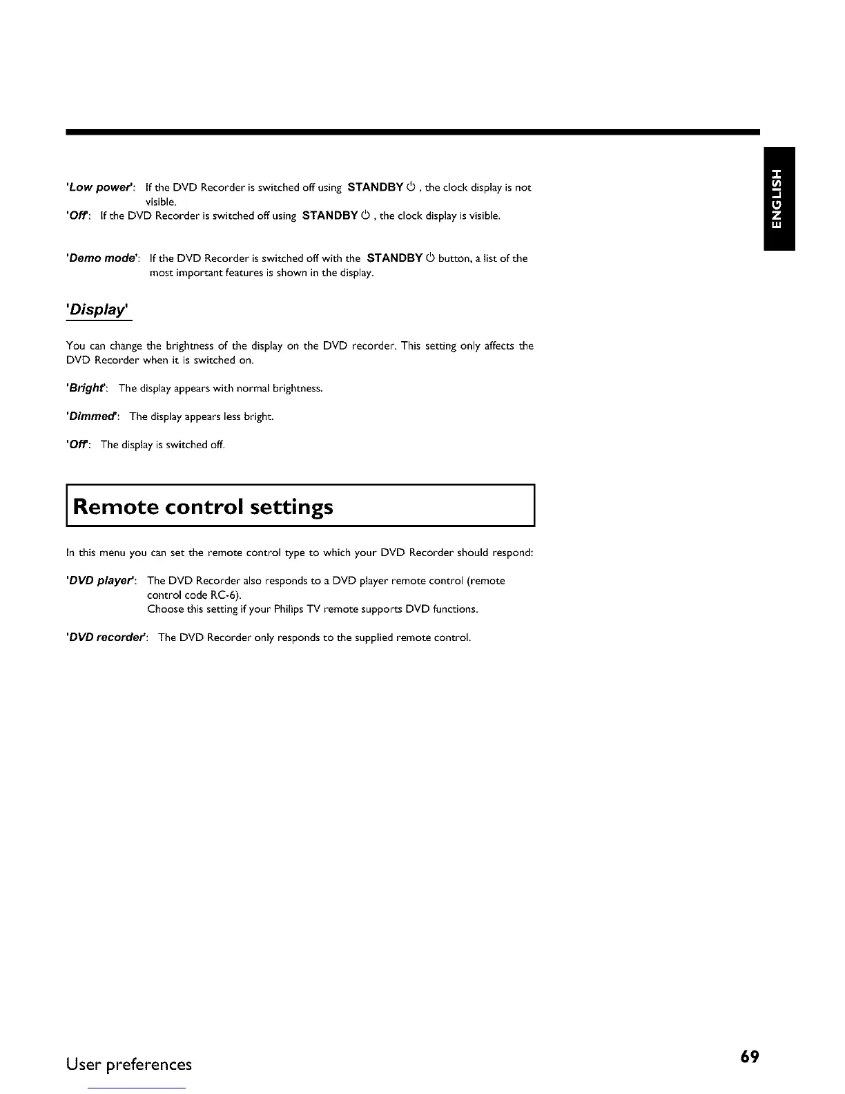 'Demo mode': If the DVD Recorder is switched off with the STANDBY _) button, a list of the
