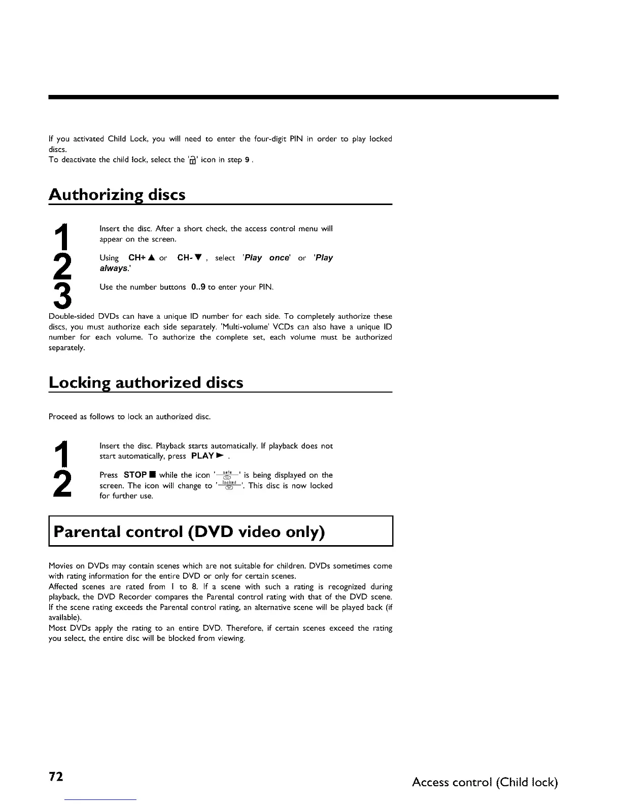 playback, the DVD Recorder compares the Parental control rating with that of the DVD scene.