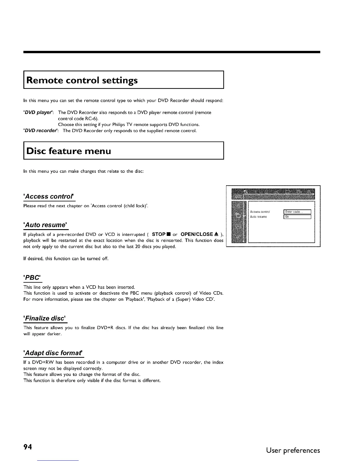 'DVD player': The DVD Recorder also responds to a DVD player remote control (remote
