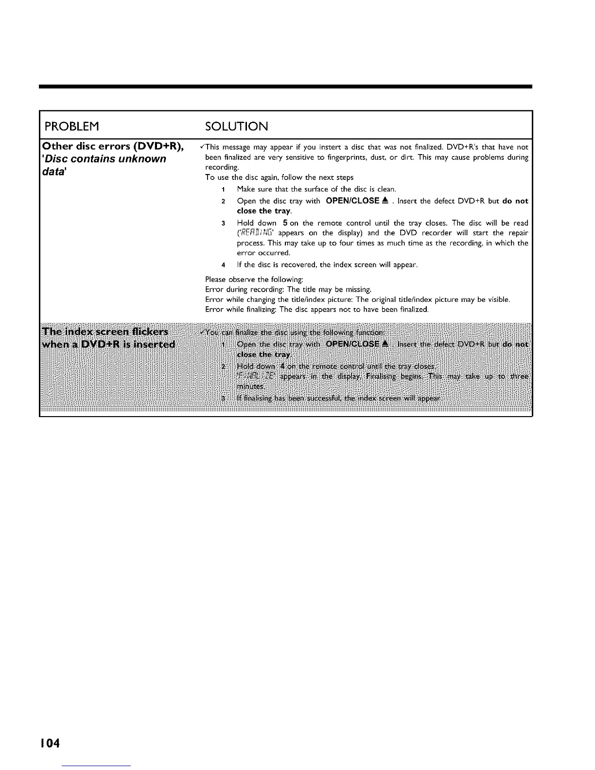 •_This message may appear if you instert a disc that was not finalized DVD+R's that have not