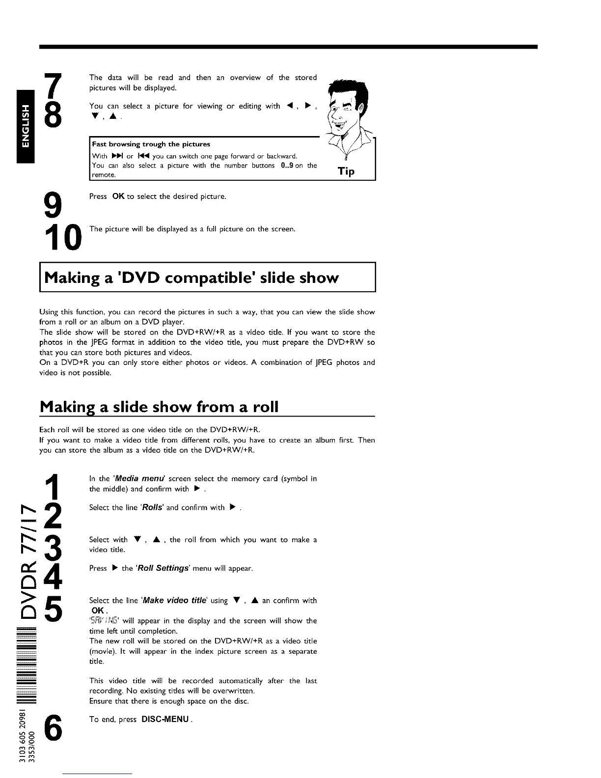 The slide show will be stored on the DVD+RW/+R as a video title. If you want to store the