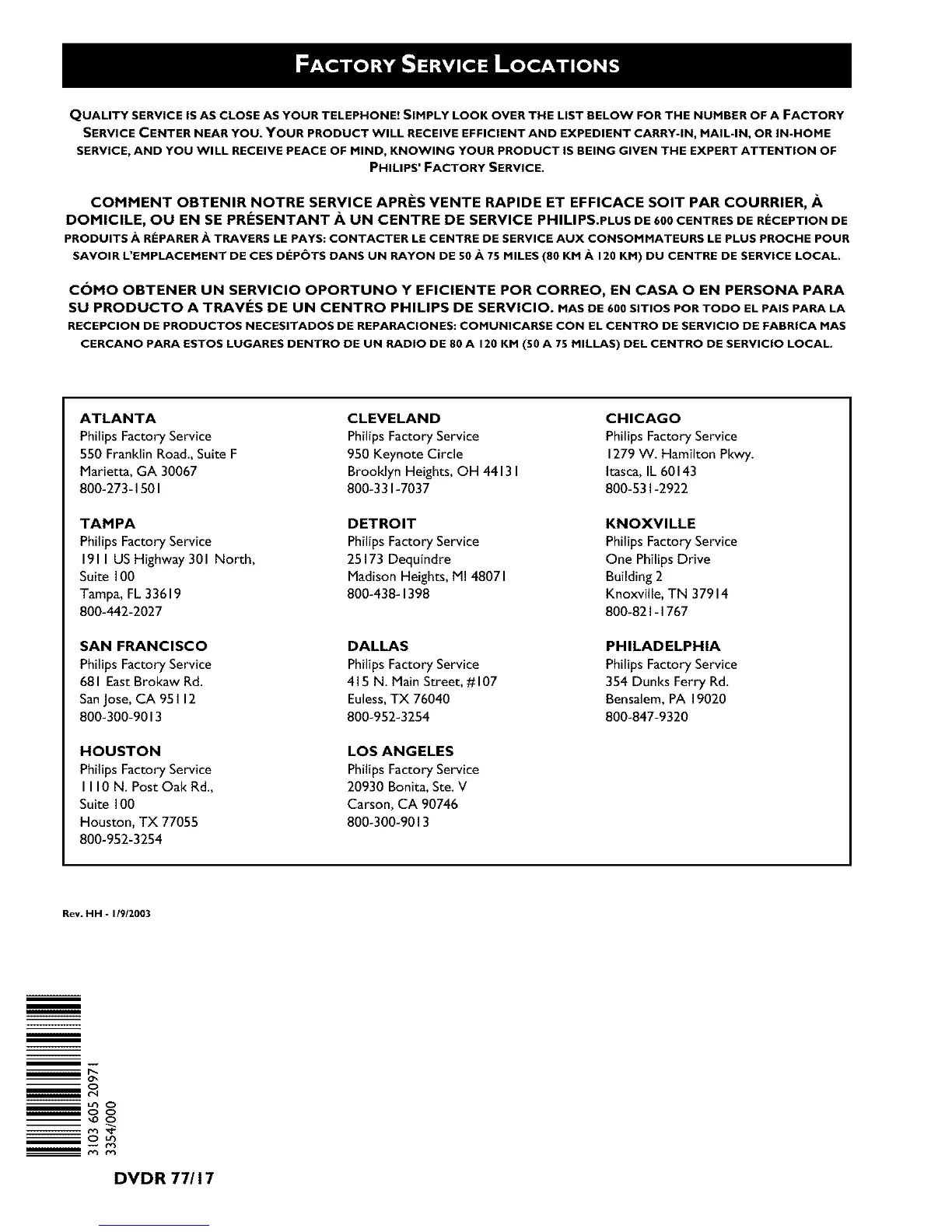 SU PRODUCTO A TRAVES DE UN CENTRO PHlUPS DE SERVICIO. MAS DE 600 SITIOS POR TODO EL PAlS PARA LA