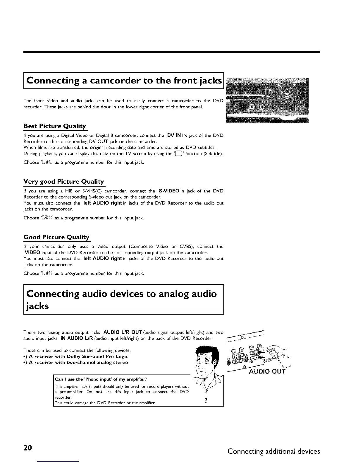 recorder These jacks are behind the door in the lower right corner of the front panel