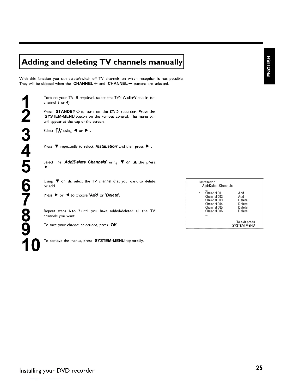 Repeat steps 6 to 7 until you have added/deleted all the TV