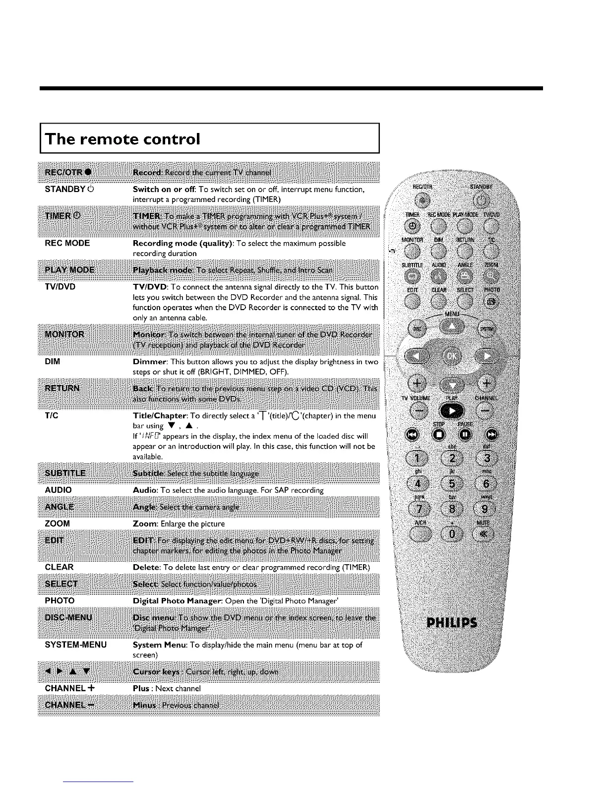 Delete: To delete last entry or clear programmed recording (TIMER)