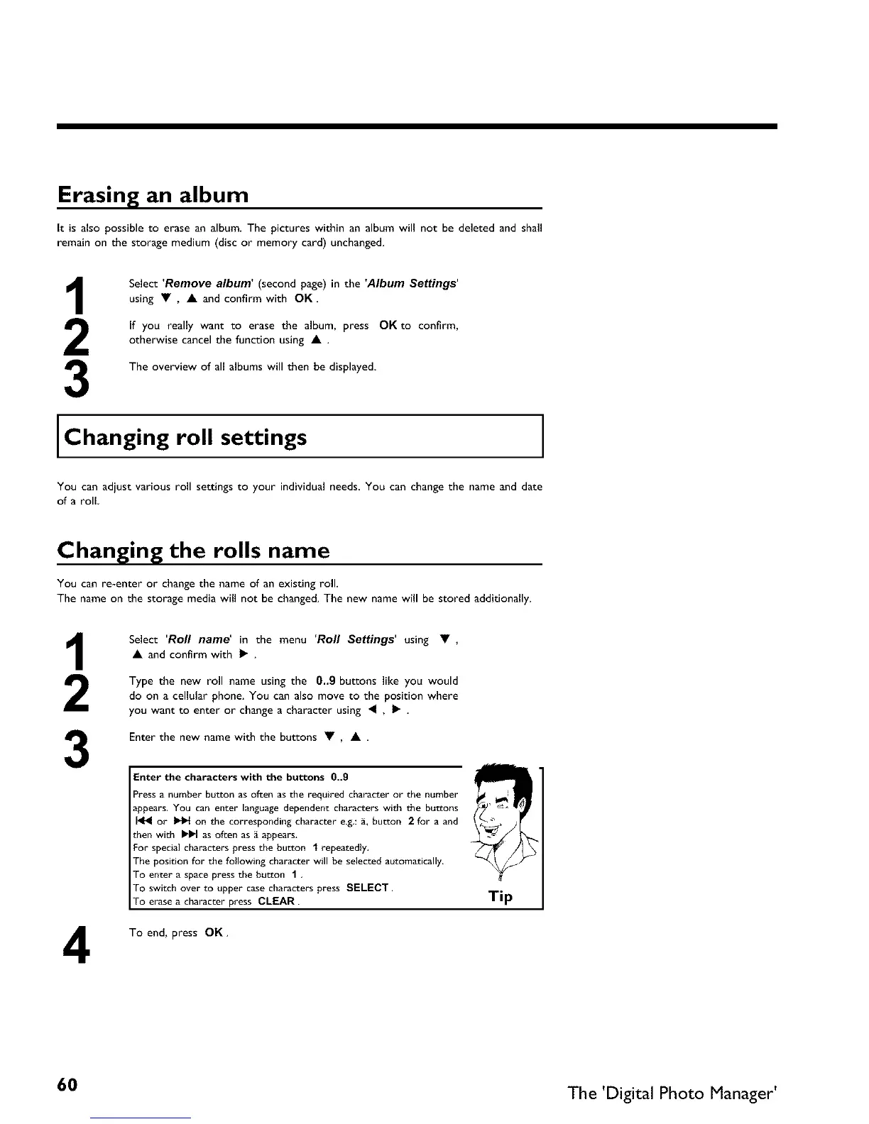 It is also possible to erase an album. The pictures within an album will not be deleted and shall