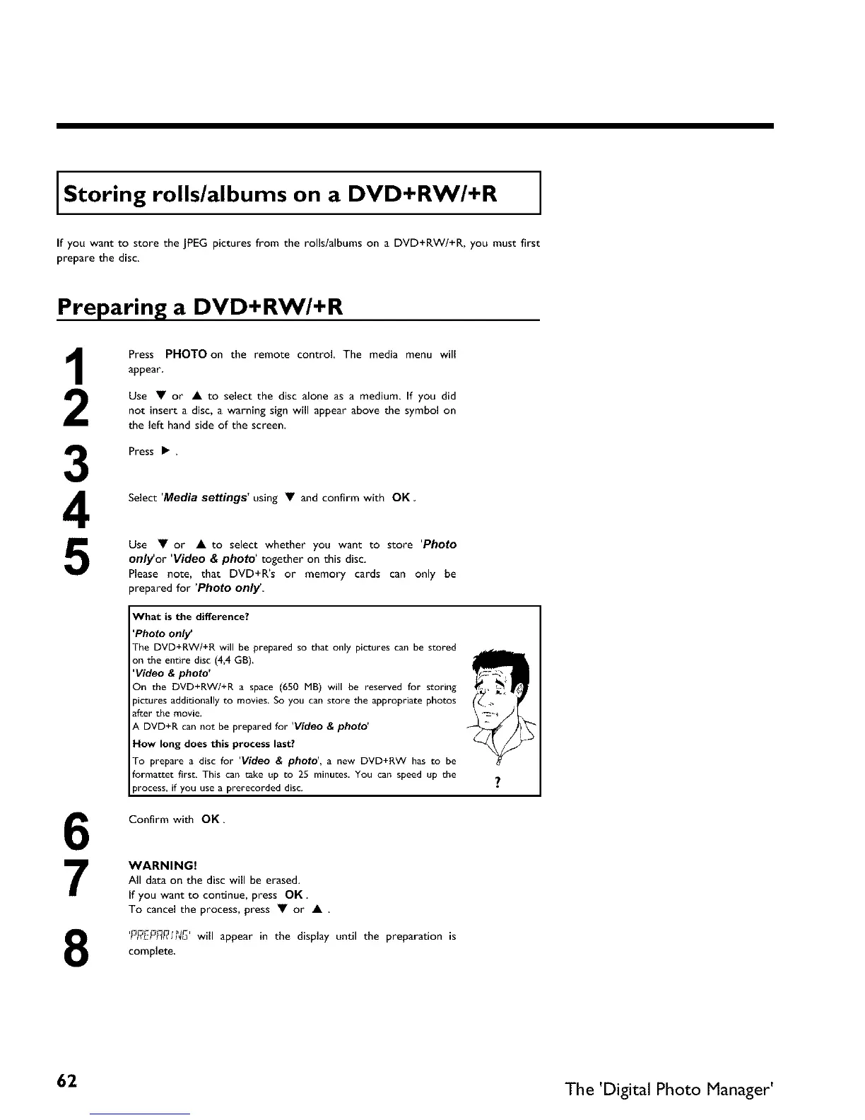 To prepare a disc for 'Video & photo', a new DVD+RW has to be