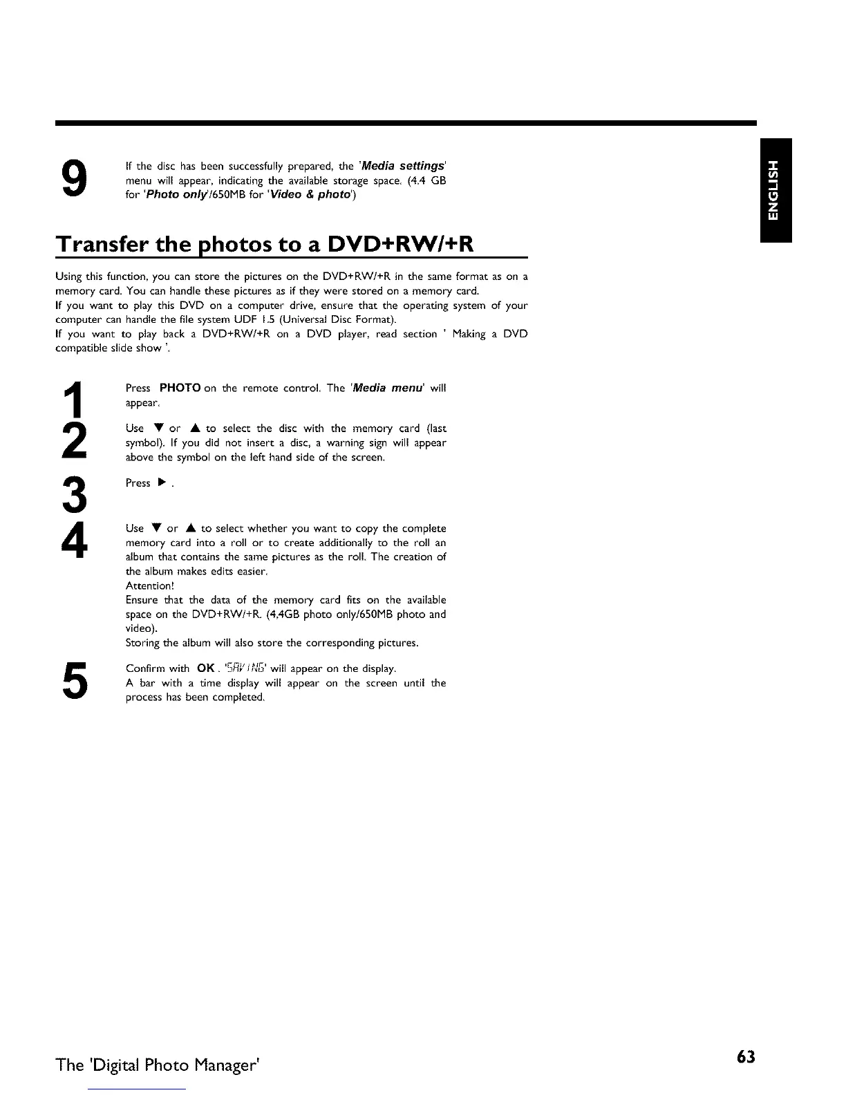 space on the DVD+RW/+R. (4,4GB photo only/650MB photo and