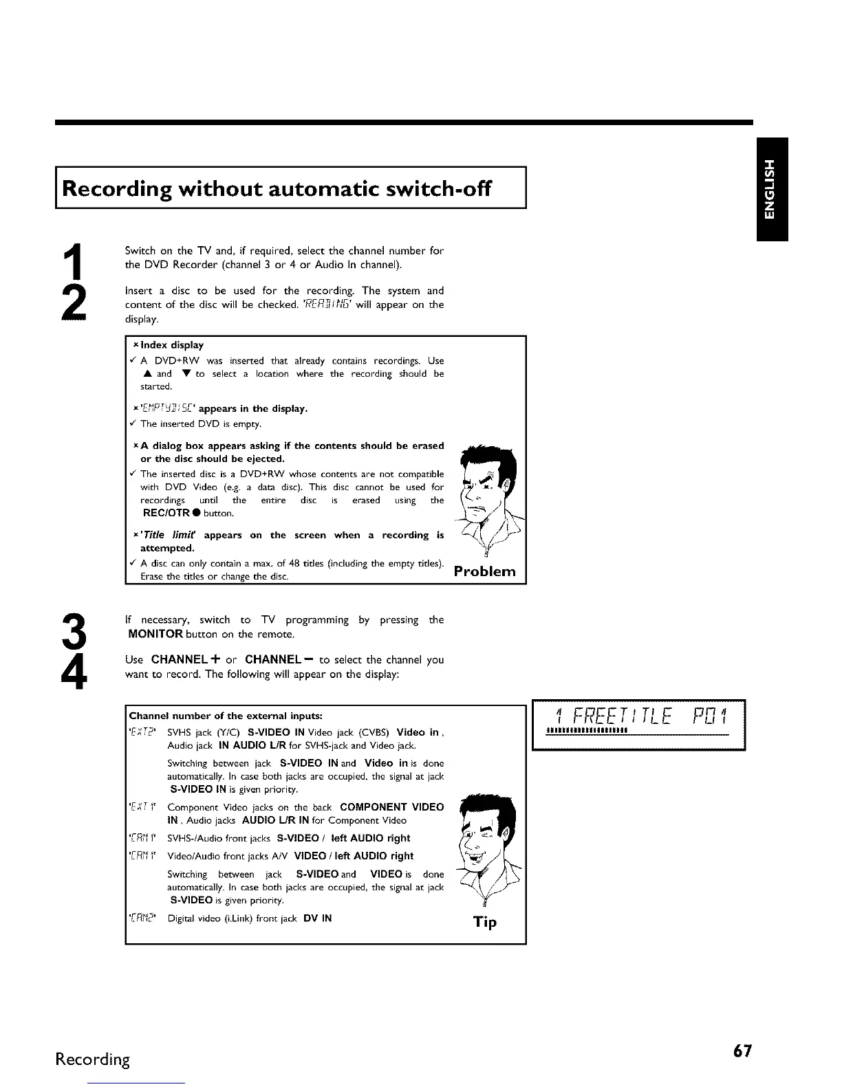 Insert a disc to be used for the recording. The system and