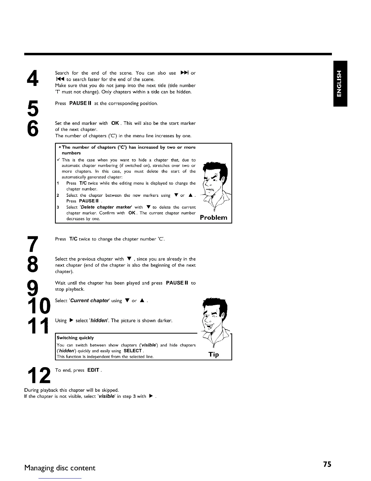 if the chapter is not visible, select 'visible' in step 3 with • .