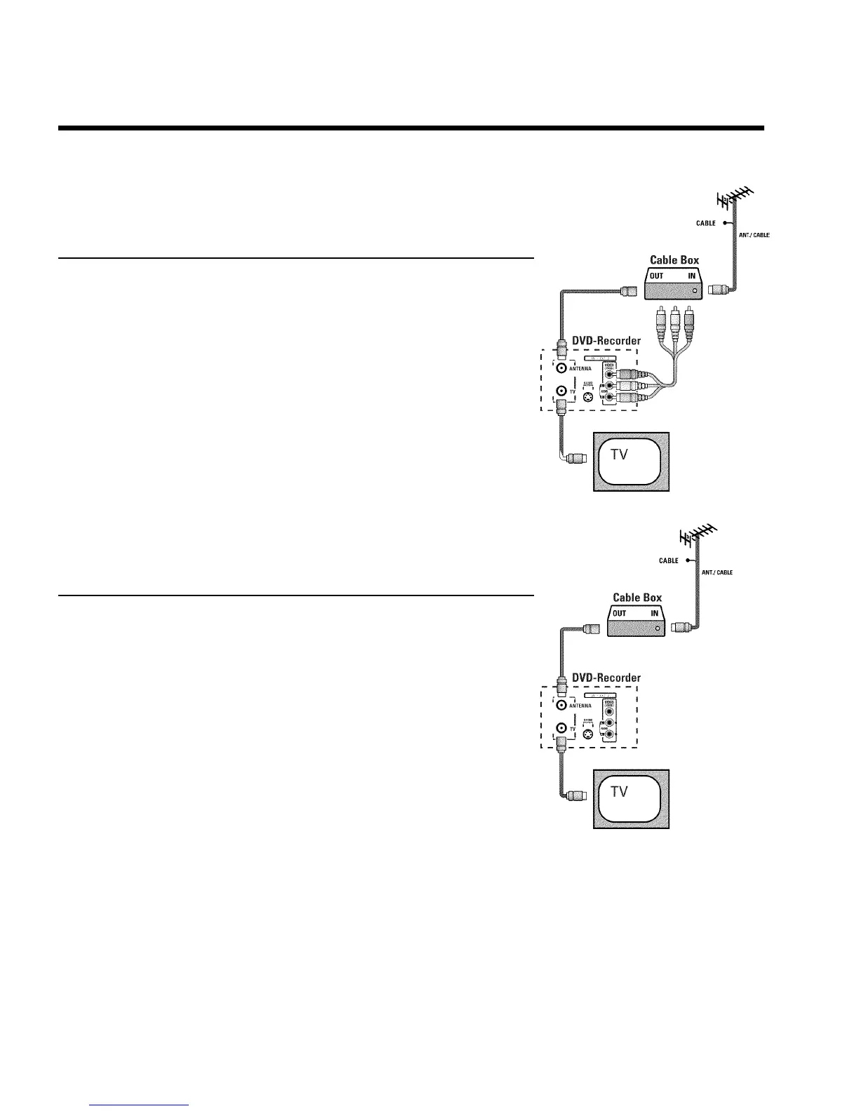 También, el cable de antena debe estar conectado al receptor cable y a grabadora DVD como