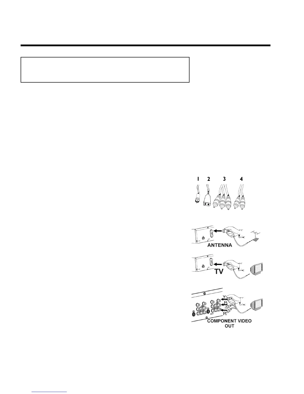 an antenna cable (1, supplied), a power cable (2, supplied), a Component Video (Y Pb Pr) cable