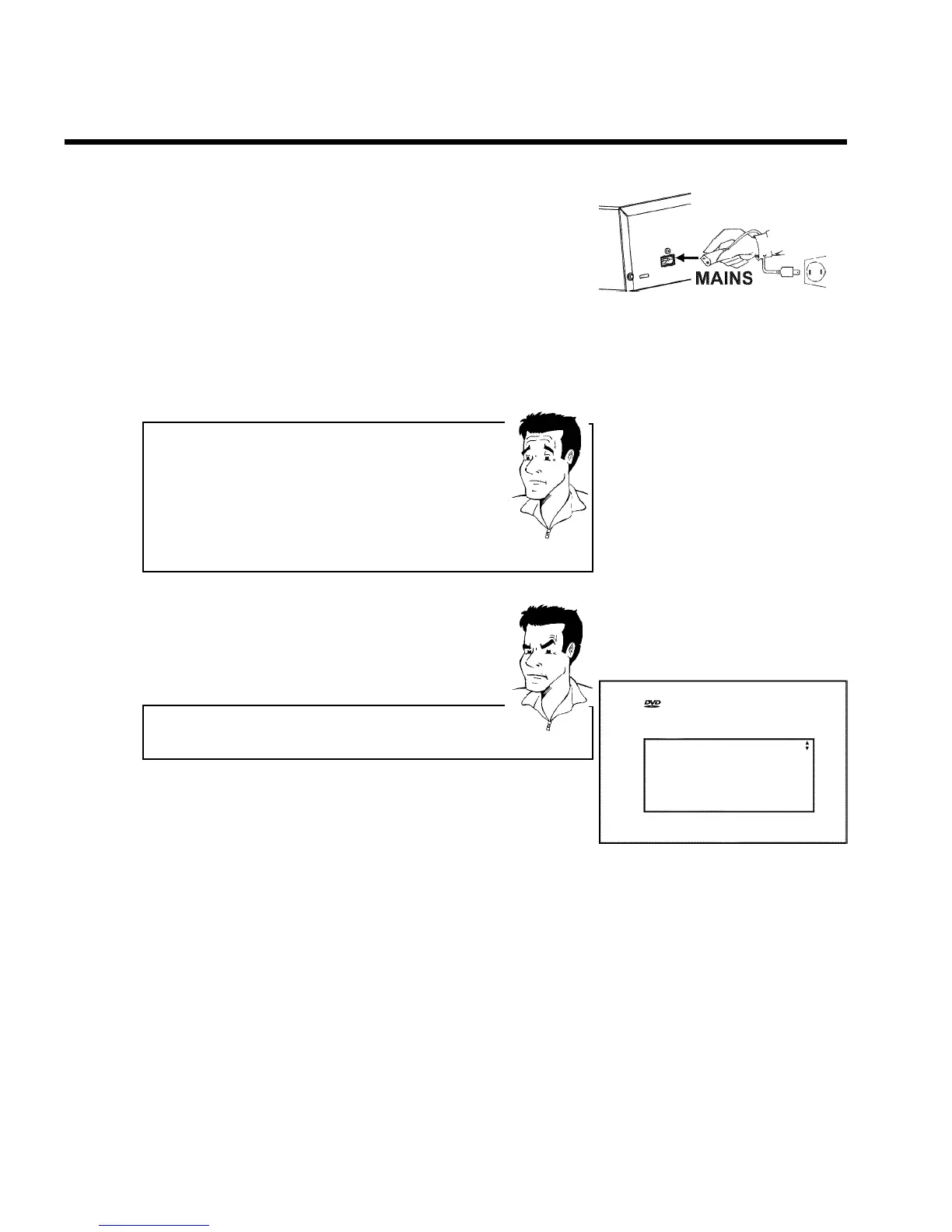 Connect the mains jack 4MAINS at the back of the DVD