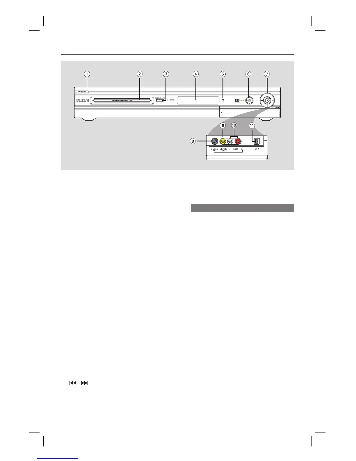 – Turns the recorder on or to standby