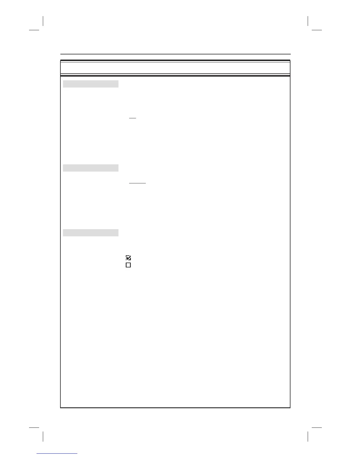 Sound settings (underlined options are the factory default settings)