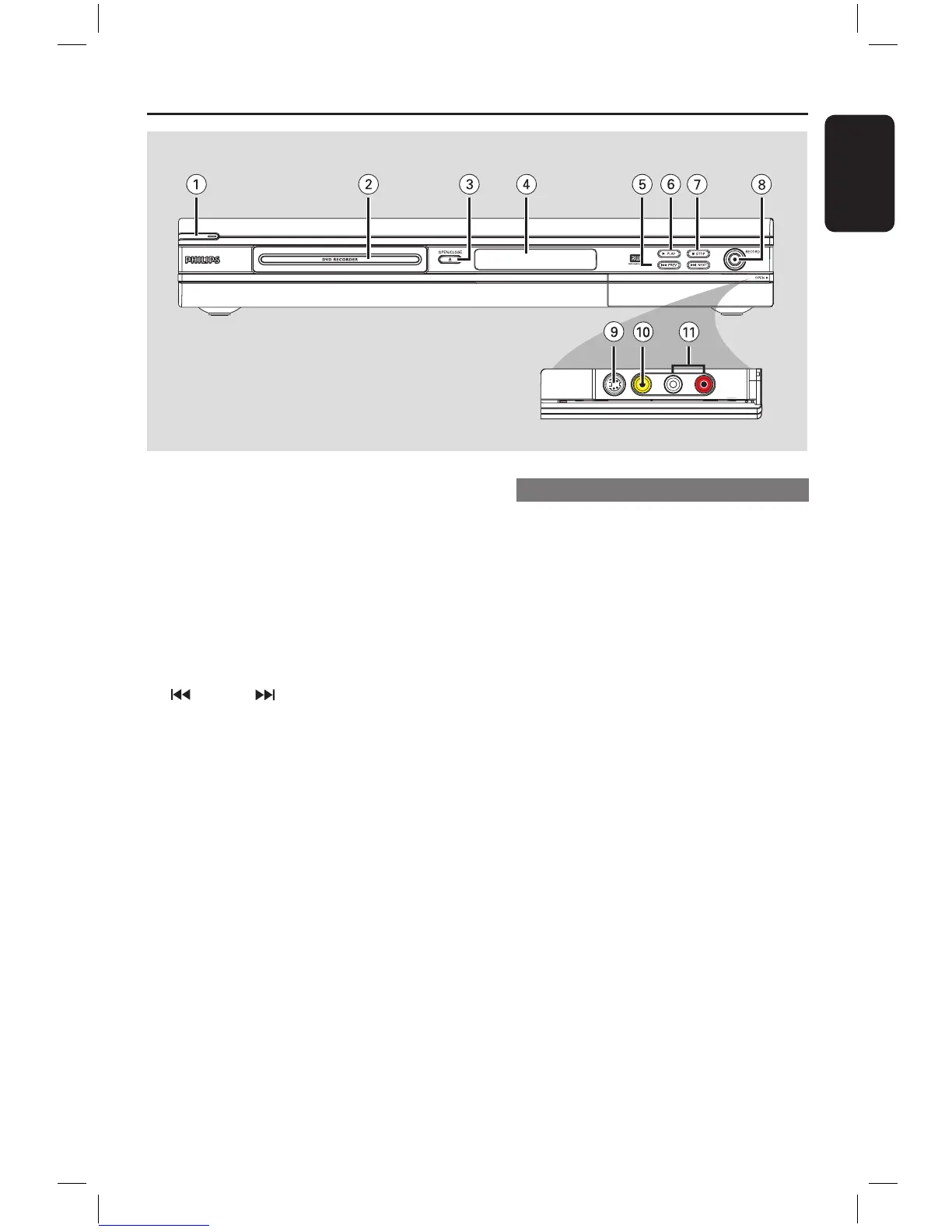– Turns on or off the DVD recorder.