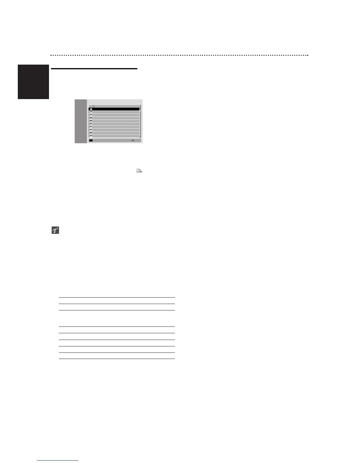 2. Press v / V to select a folder, and press OK. A list