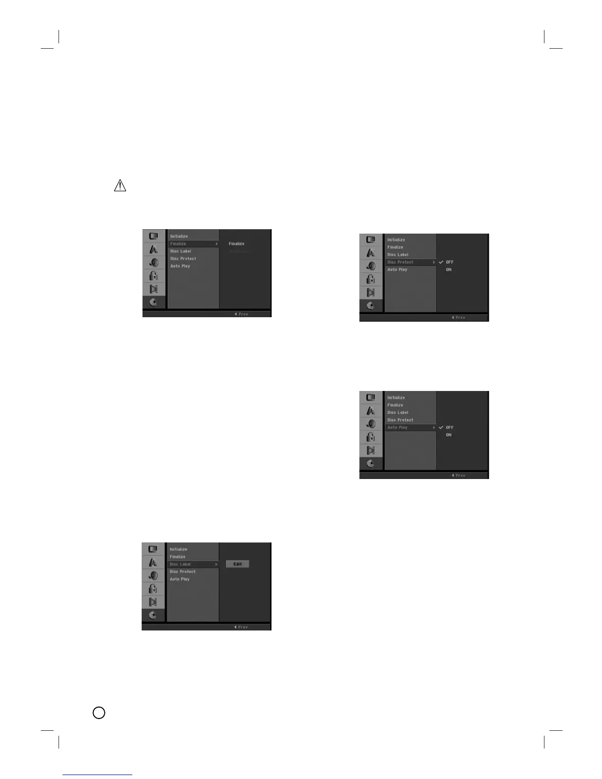 • If [Disc Protect] option is set to [ON], the finalize is not