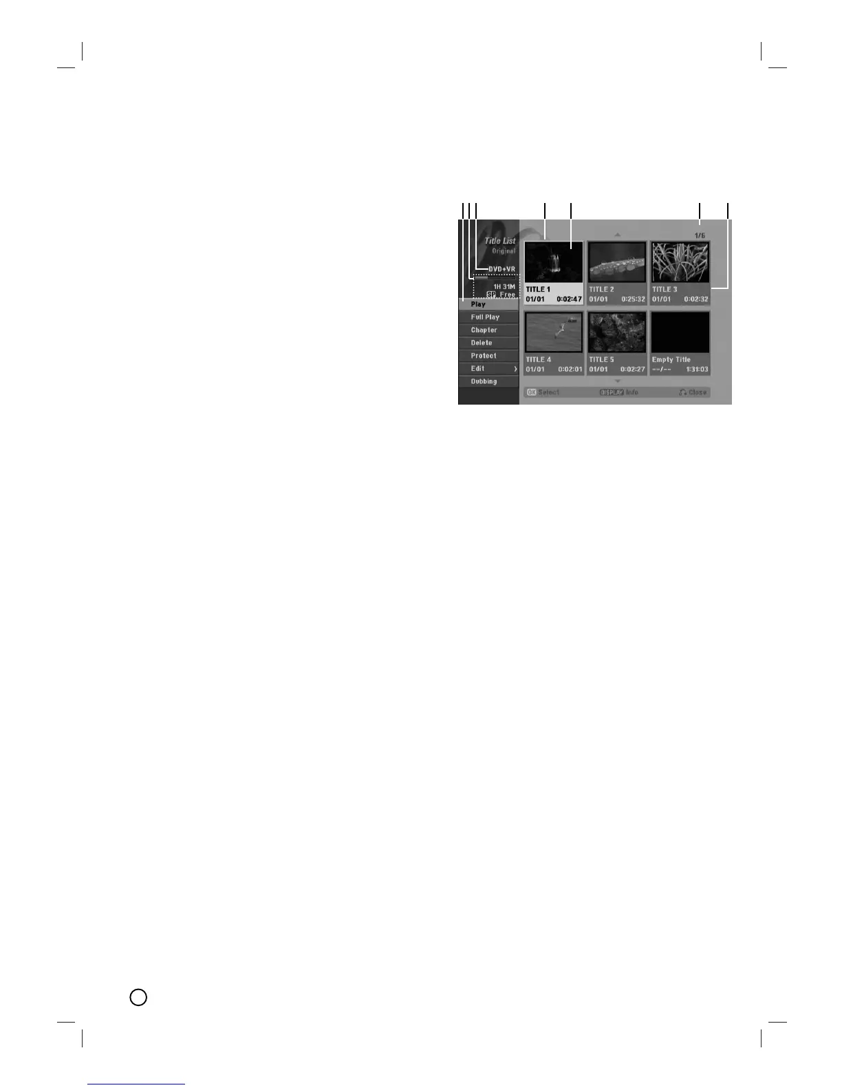 6. Shows the selected title number and total number
