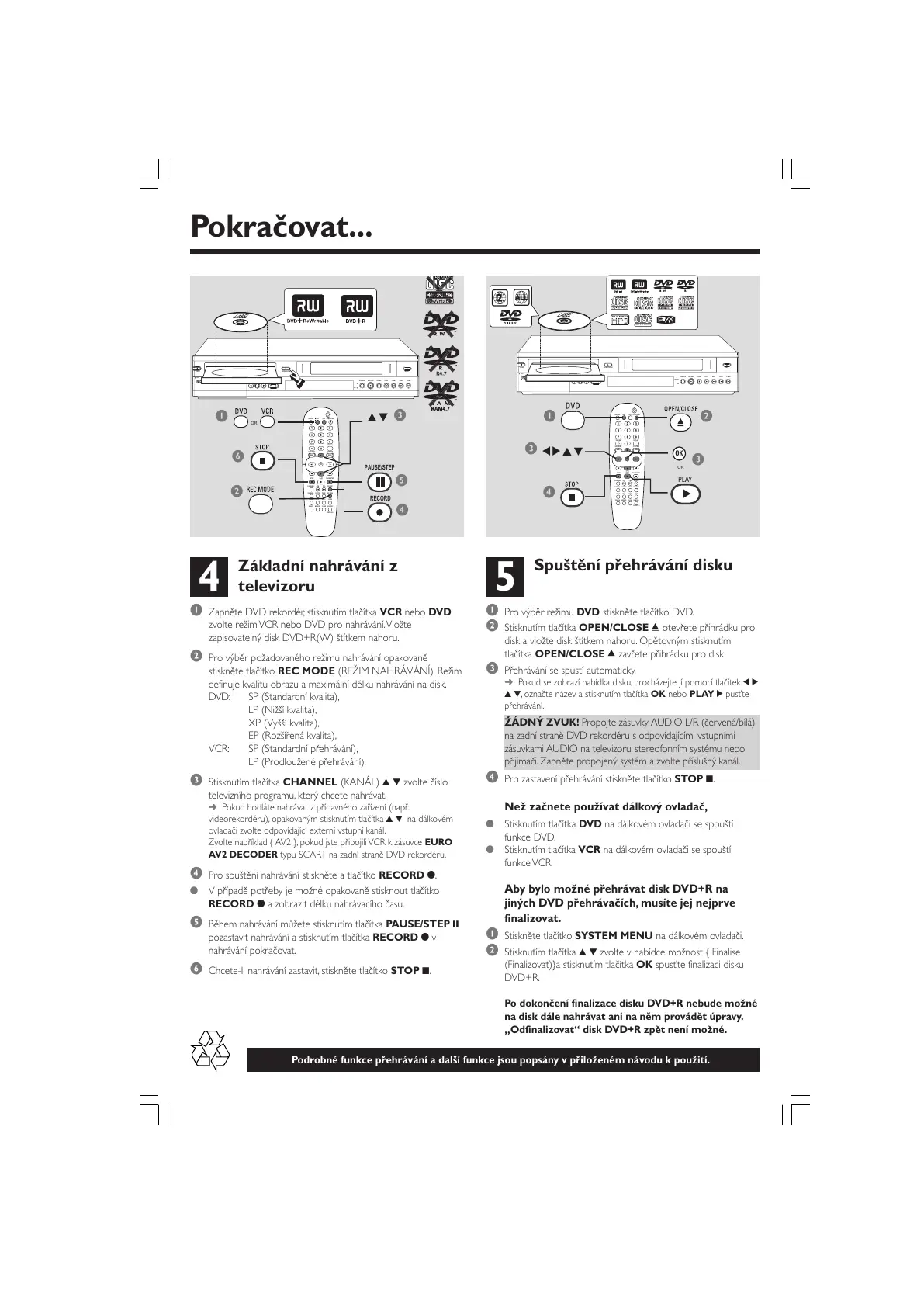 1 Zapněte DVD rekordér, stisknutím tlačítka VCR nebo DVD