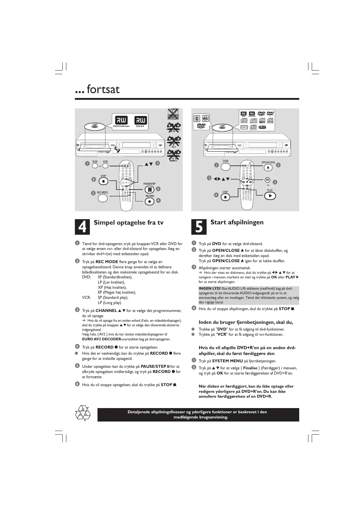 1 Tænd for dvd-optageren, tryk på knappen VCR eller DVD for
