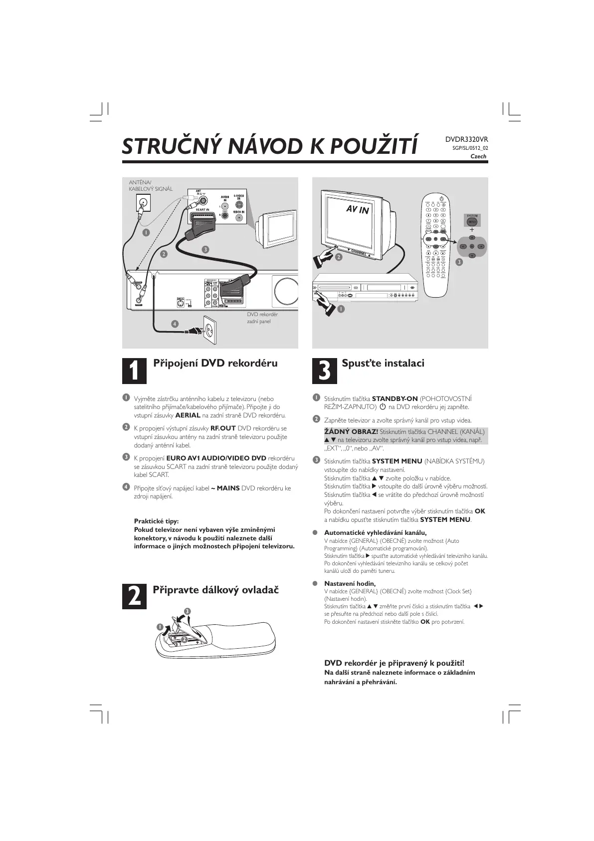 3 K propojení EURO AV1 AUDIO/VIDEO DVD rekordéru