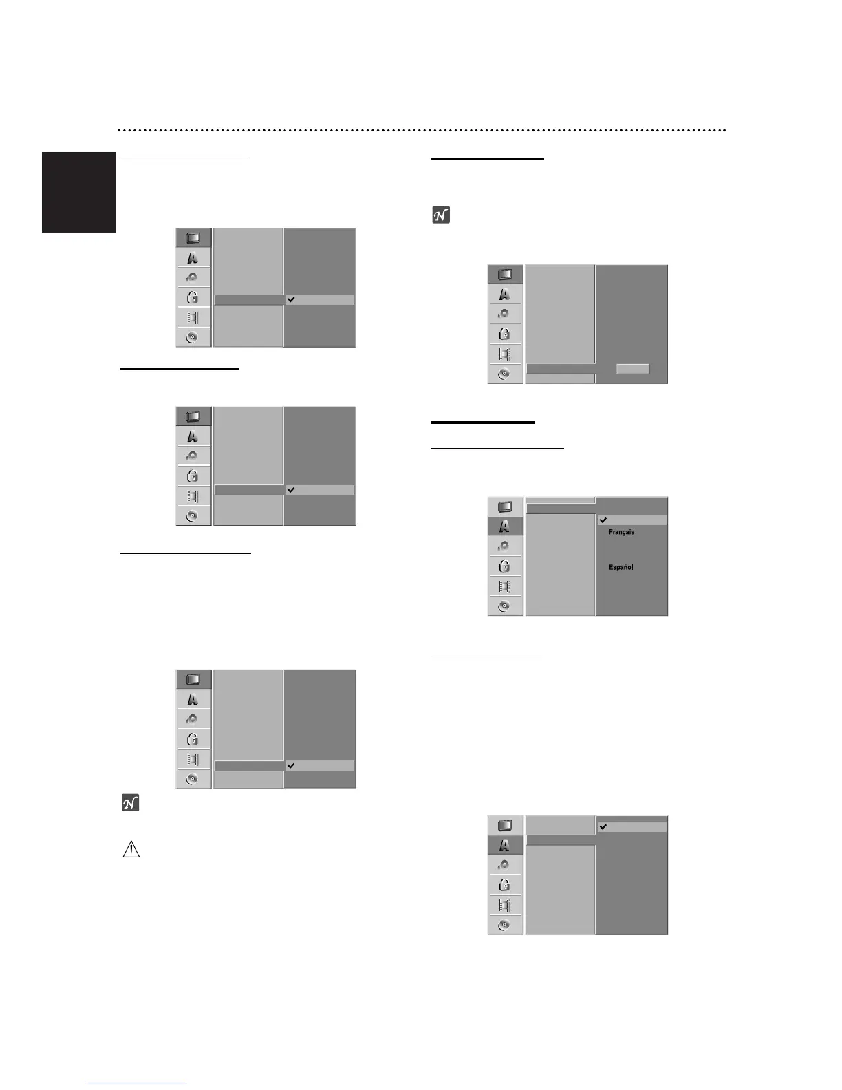 Select a language for the disc’s Menu, Audio, and Subtitle.
