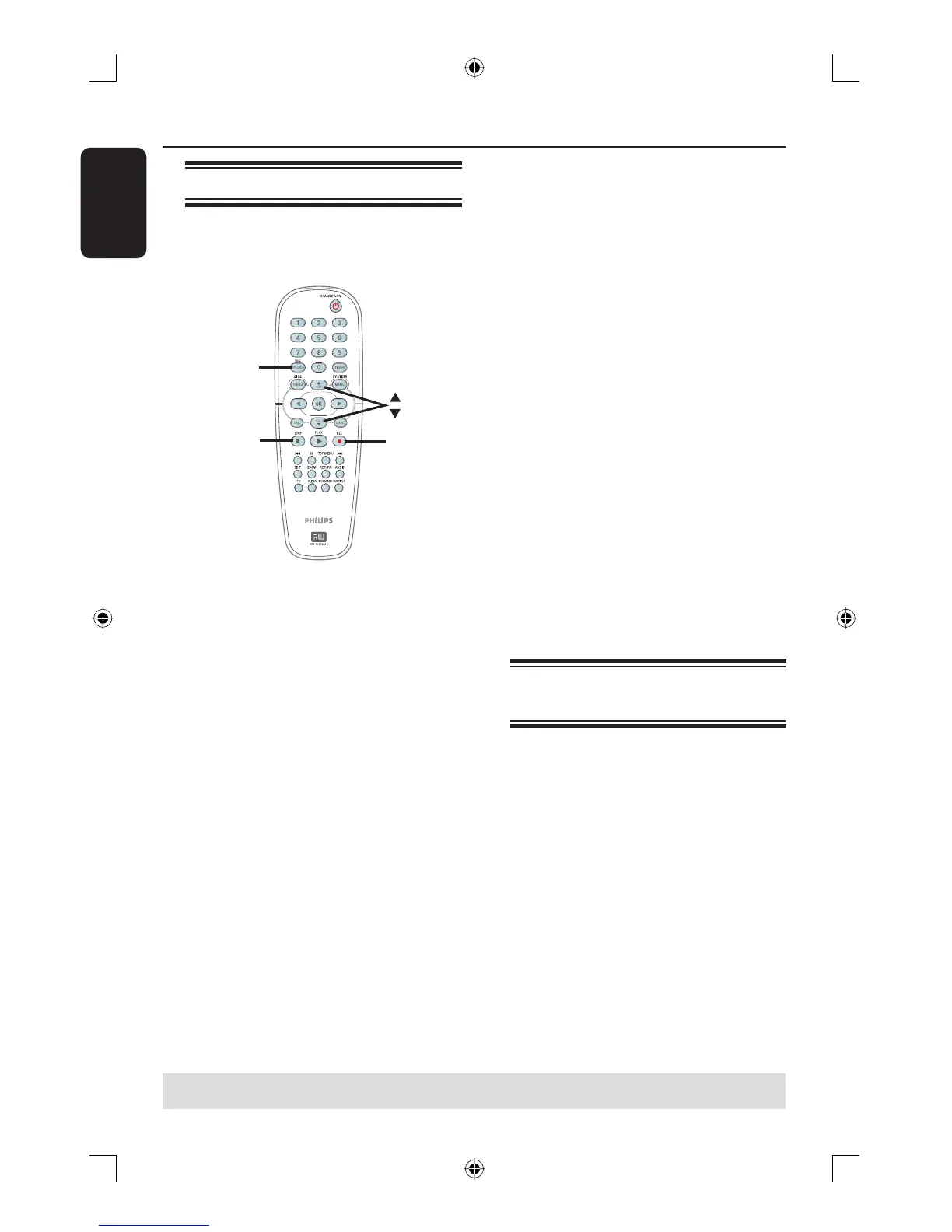 TIPS: Ensure that there is suf cient space available on the DVD±R/±RW before recording.