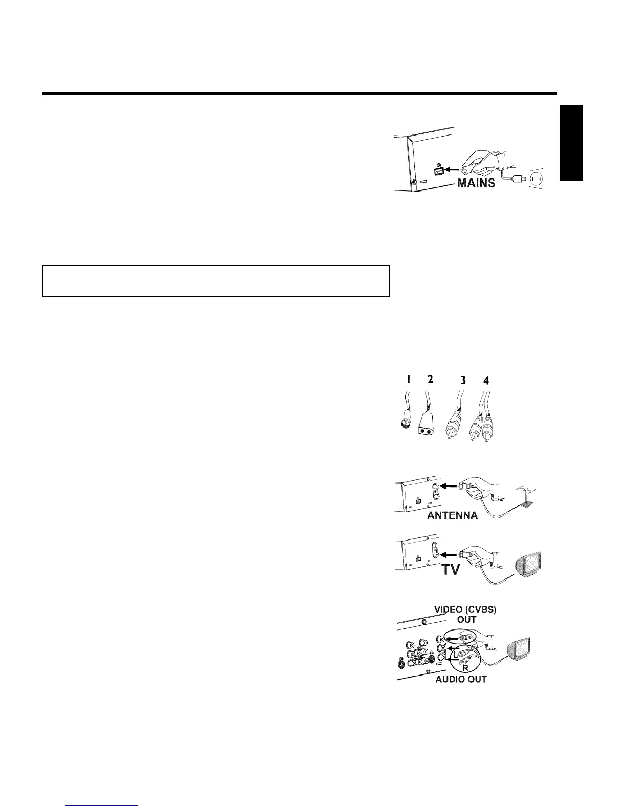Connect the mains jack 4MAINS at the back of the DVD