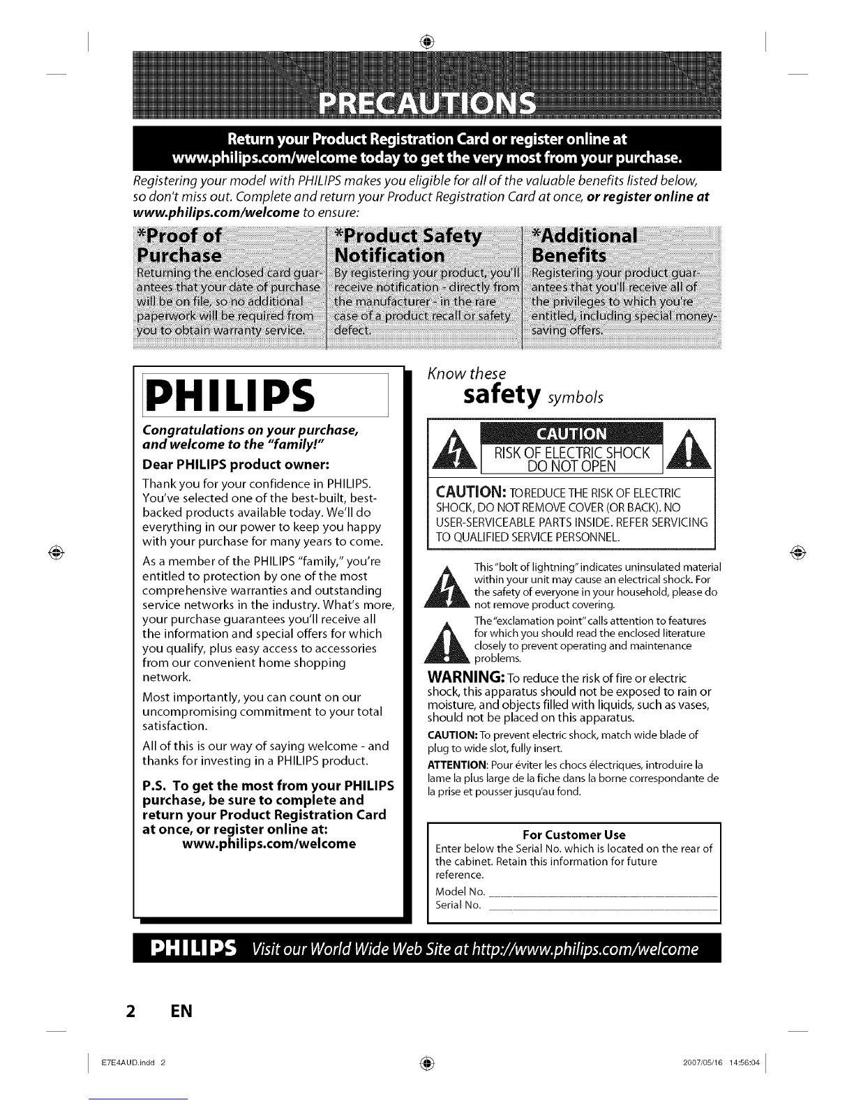 www.philips.com/welcome to ensure: