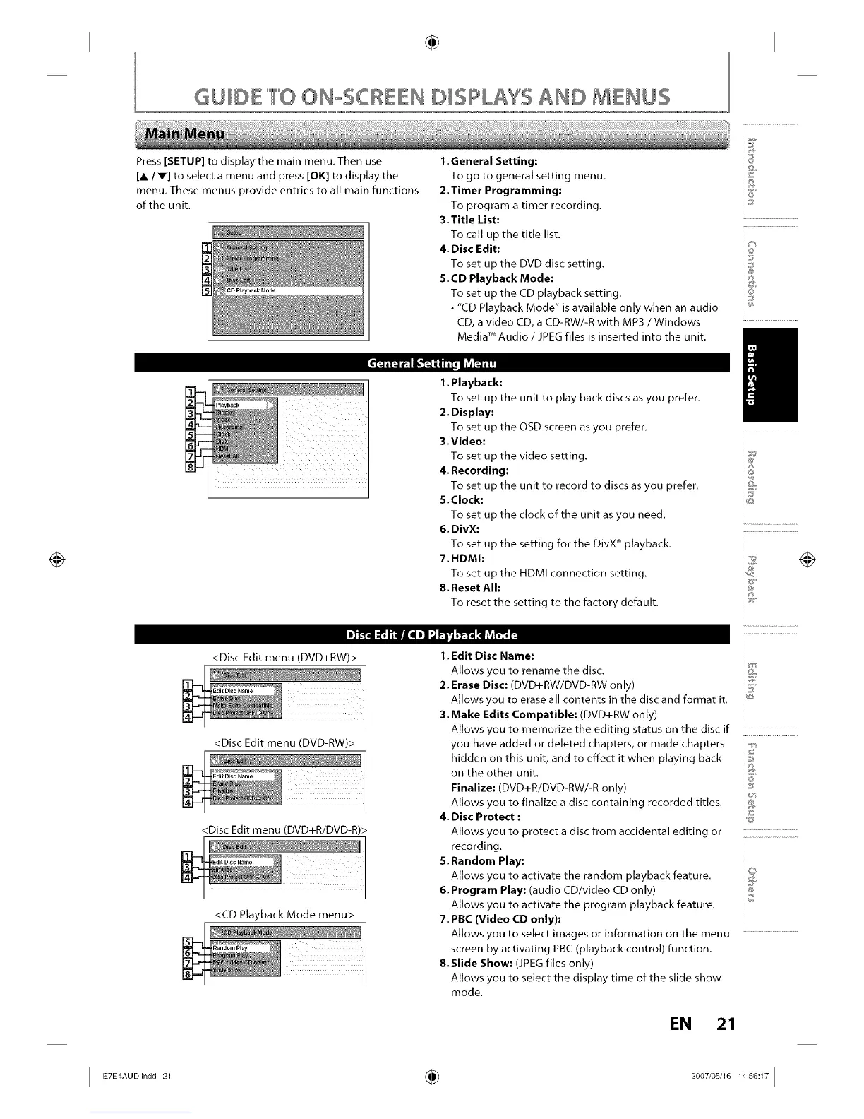 <Disc Edit menu (DVD+RW)> 1.Edit Disc Name: