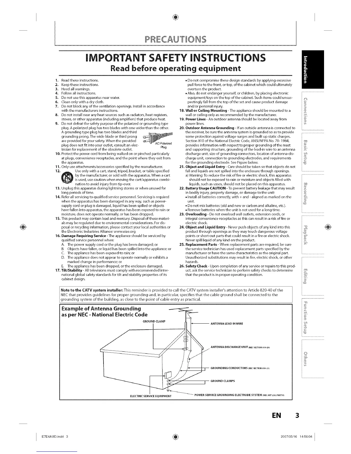 Note to the CATV system installer:This reminder is provided to call the CATV system installer's attention to Article 820-40 of the