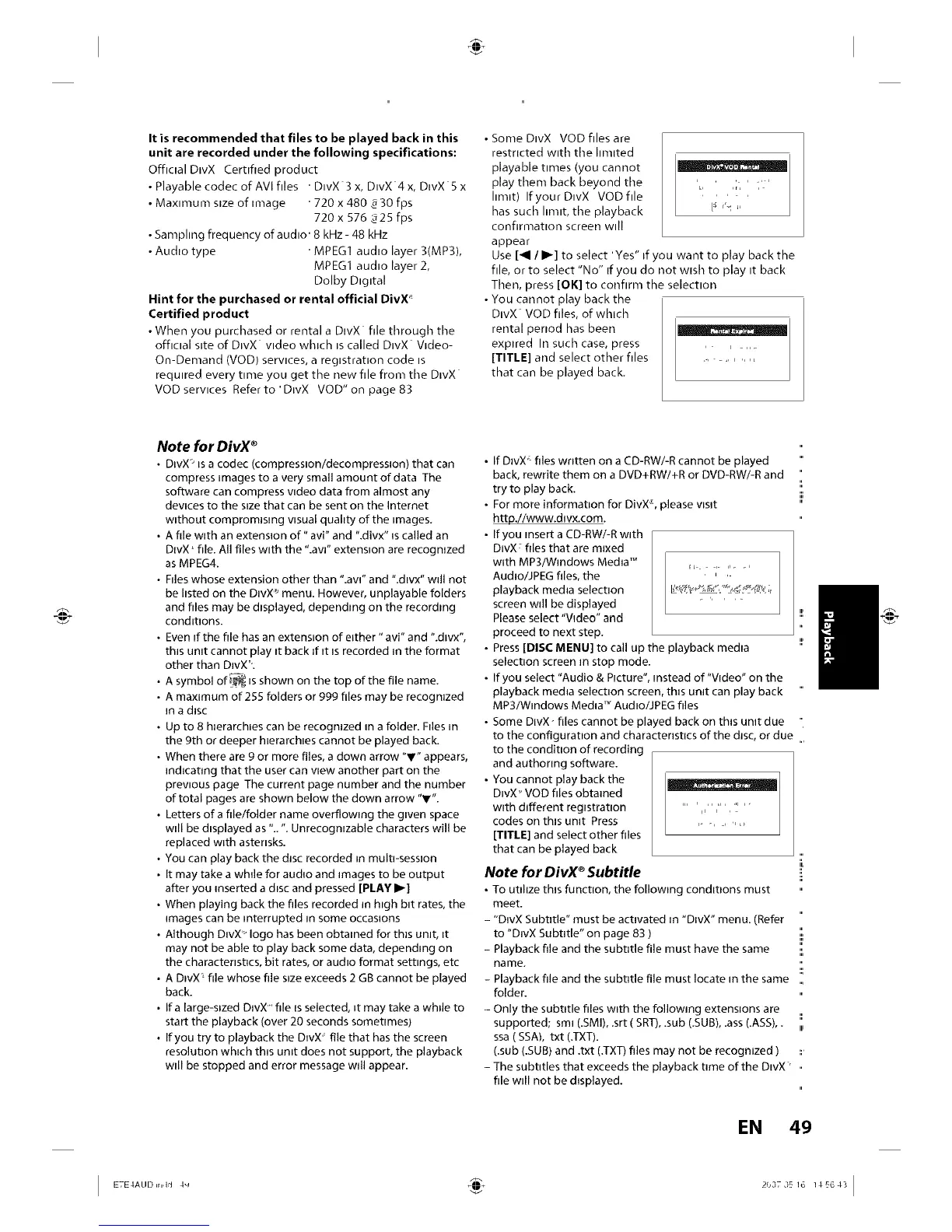 • Some DIvX VOD files are