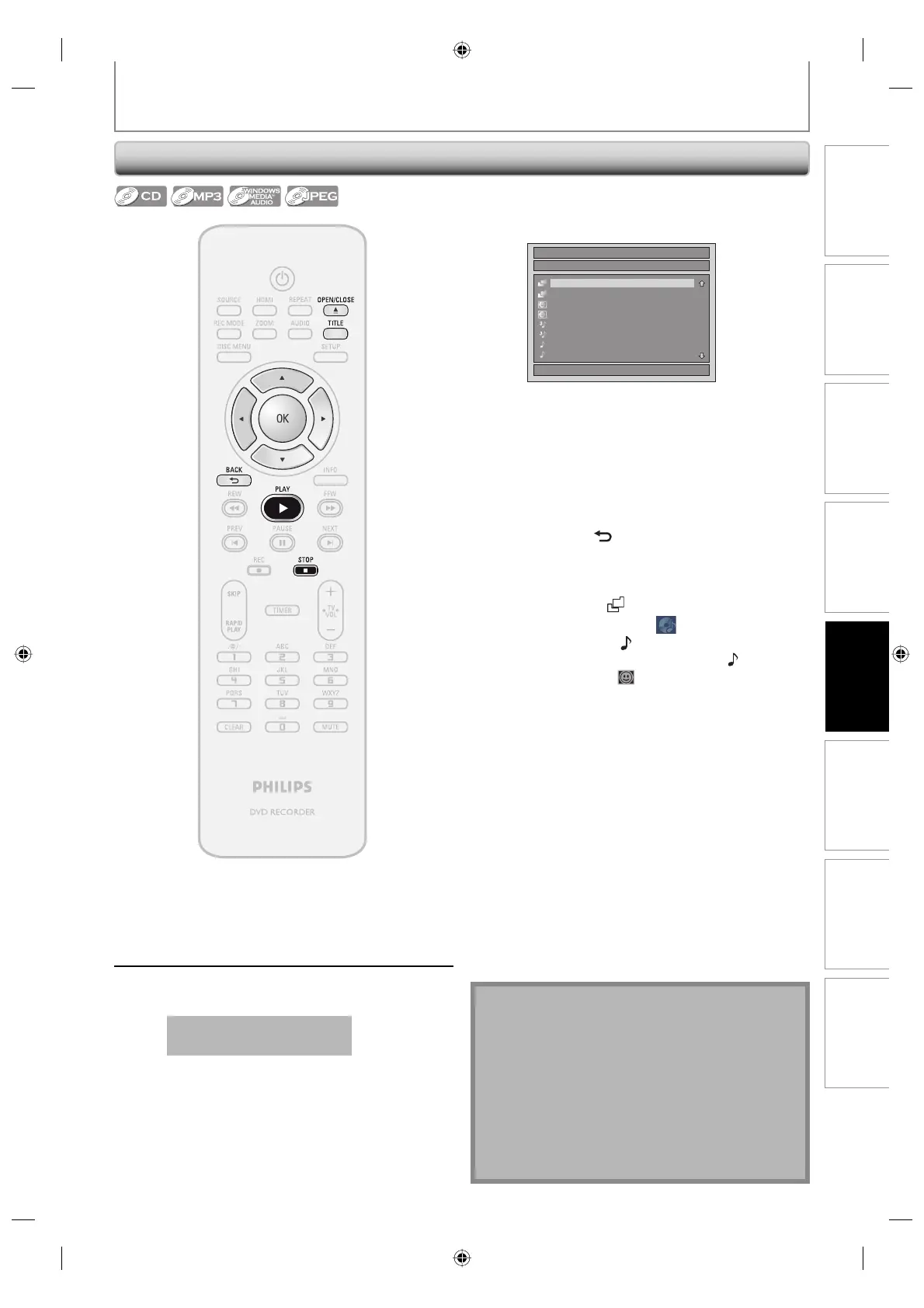 • Some unplayable folders or files may be listed due to