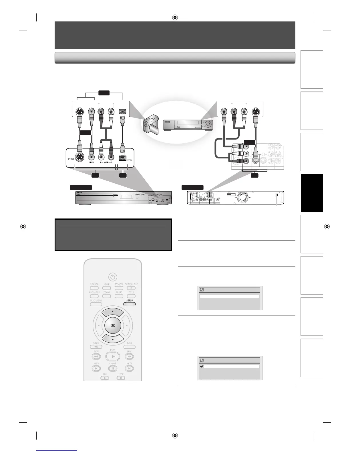 When connecting a DV-camcorder, use DV-IN jack of E3 (Front) instead of S-VIDEO IN or VIDEO IN jack. (See page 47.)