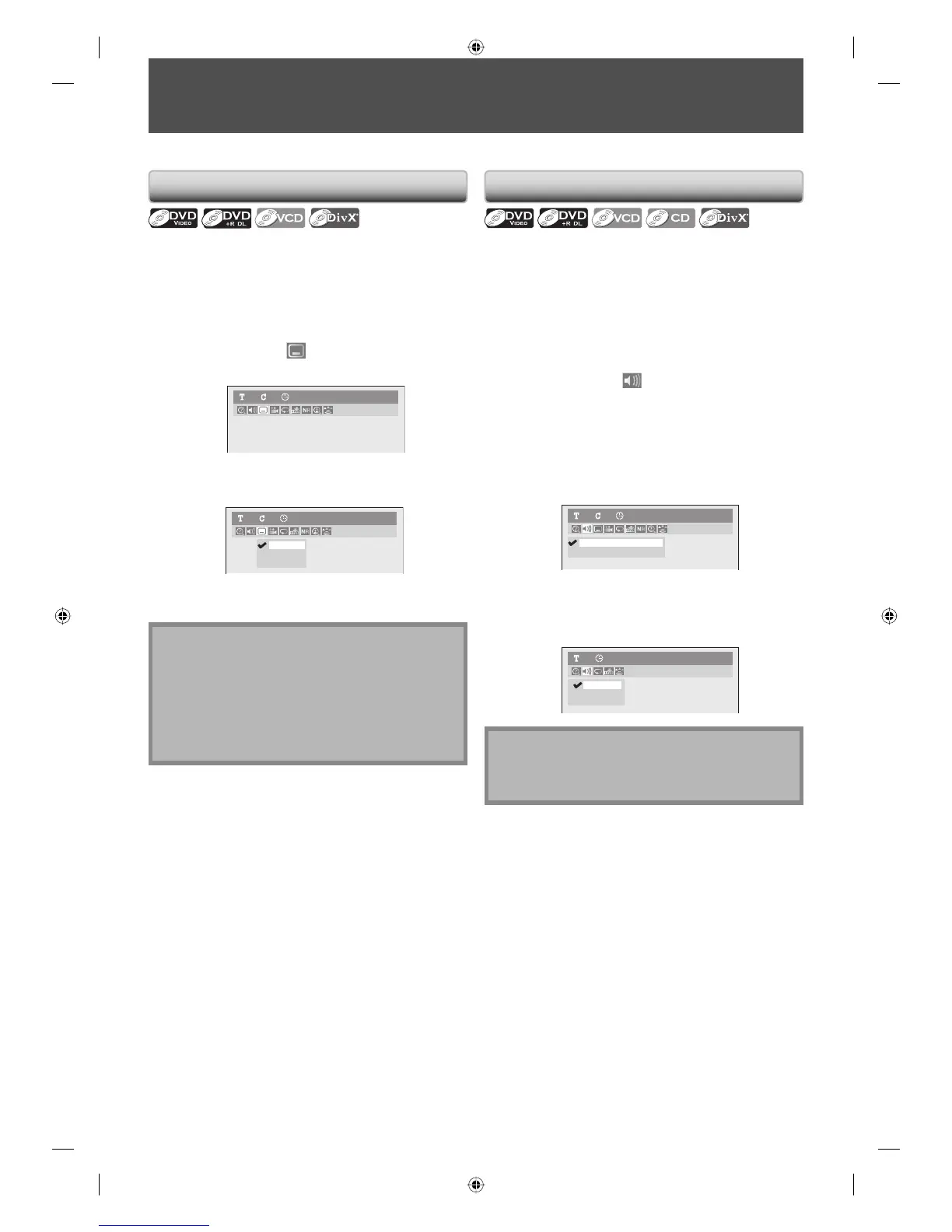 • Some discs will only allow you to change the subtitle