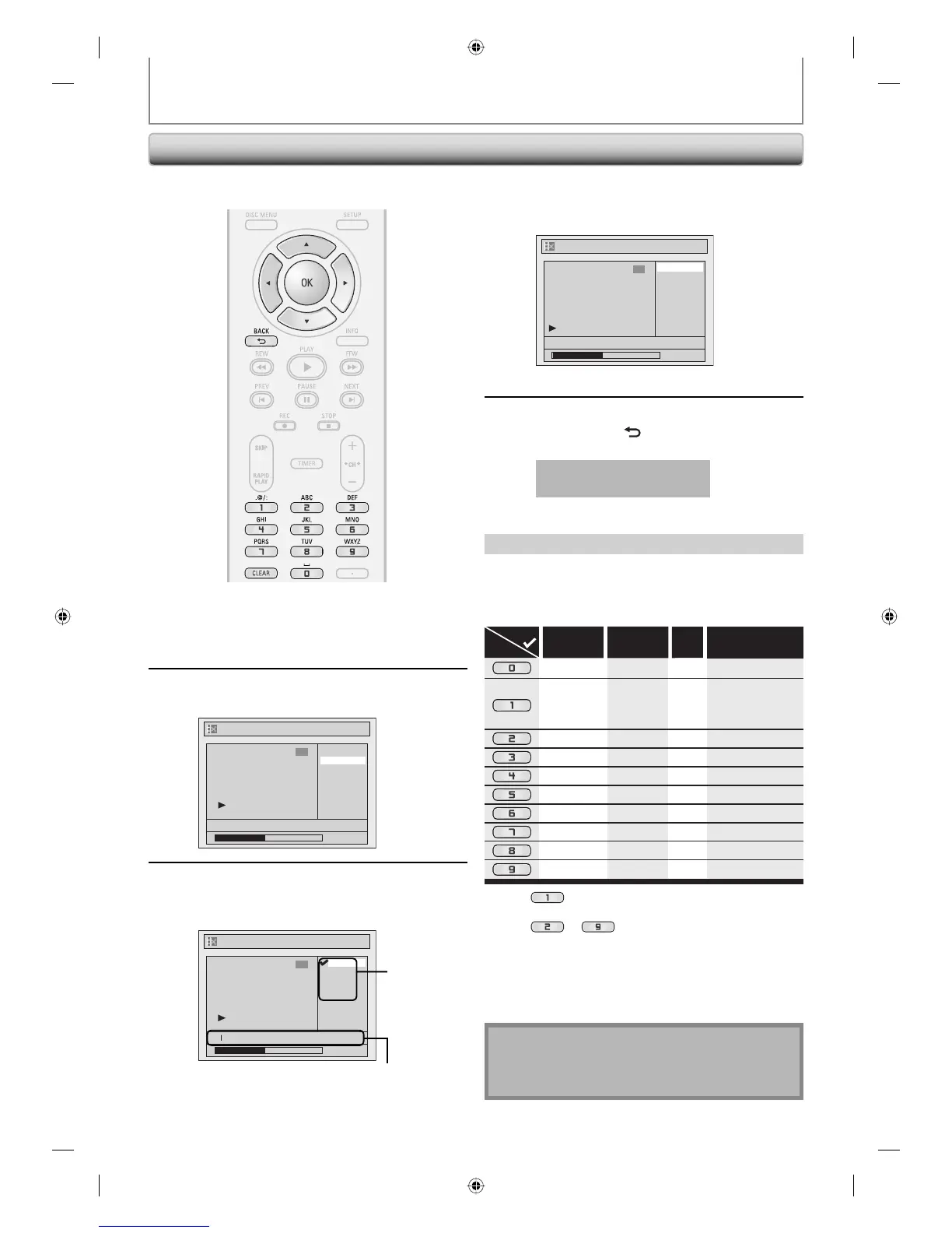 2) Follow the list below, use [the Number buttons]