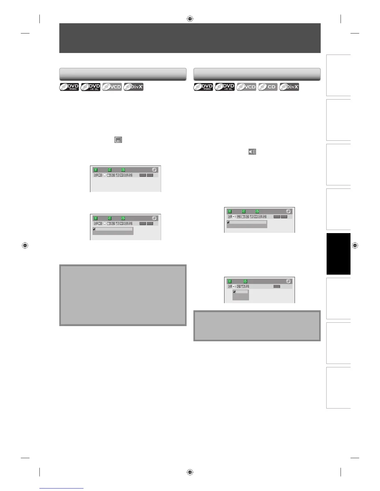 • Some discs will only allow you to change the subtitle