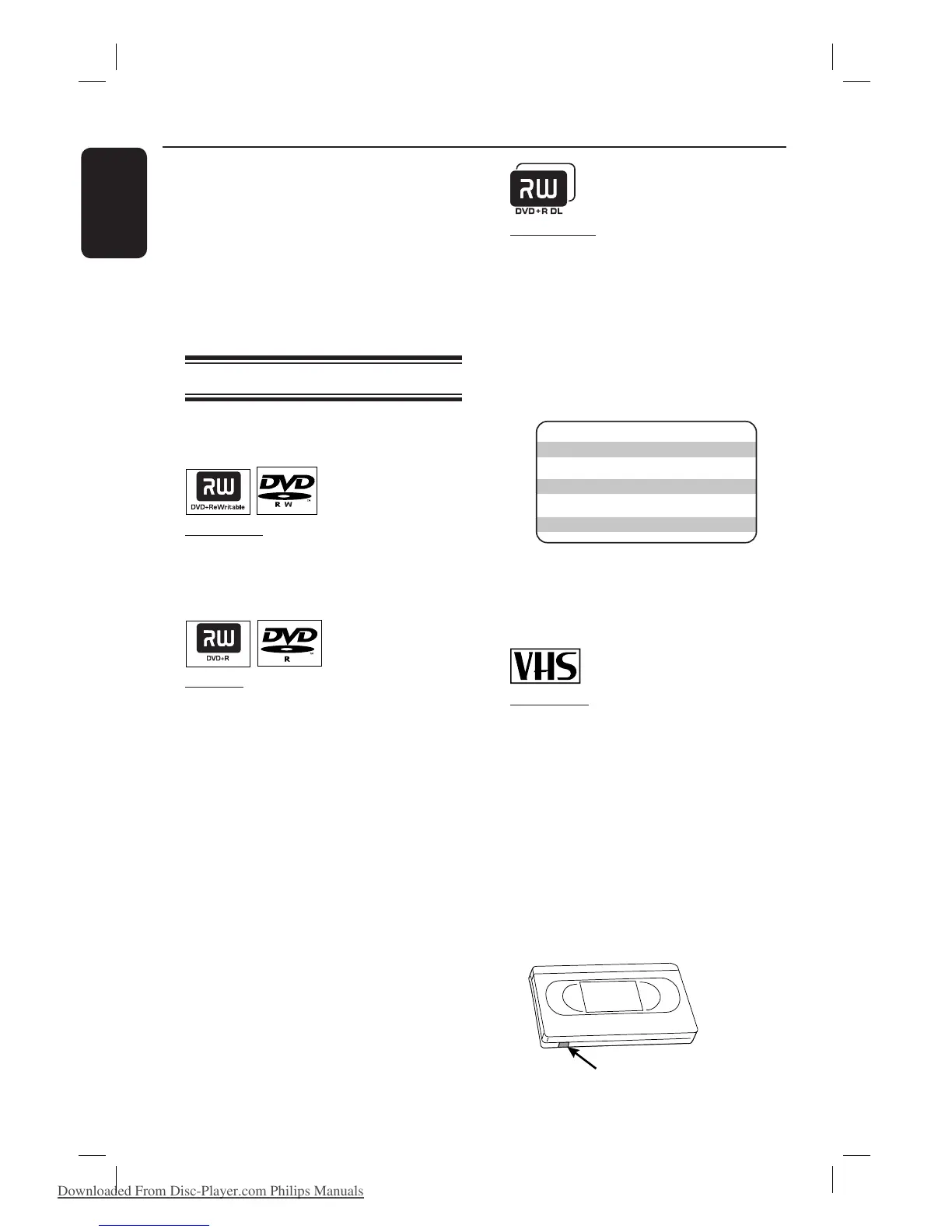 are DVD±R/±RW/+R DL and VHS tape.