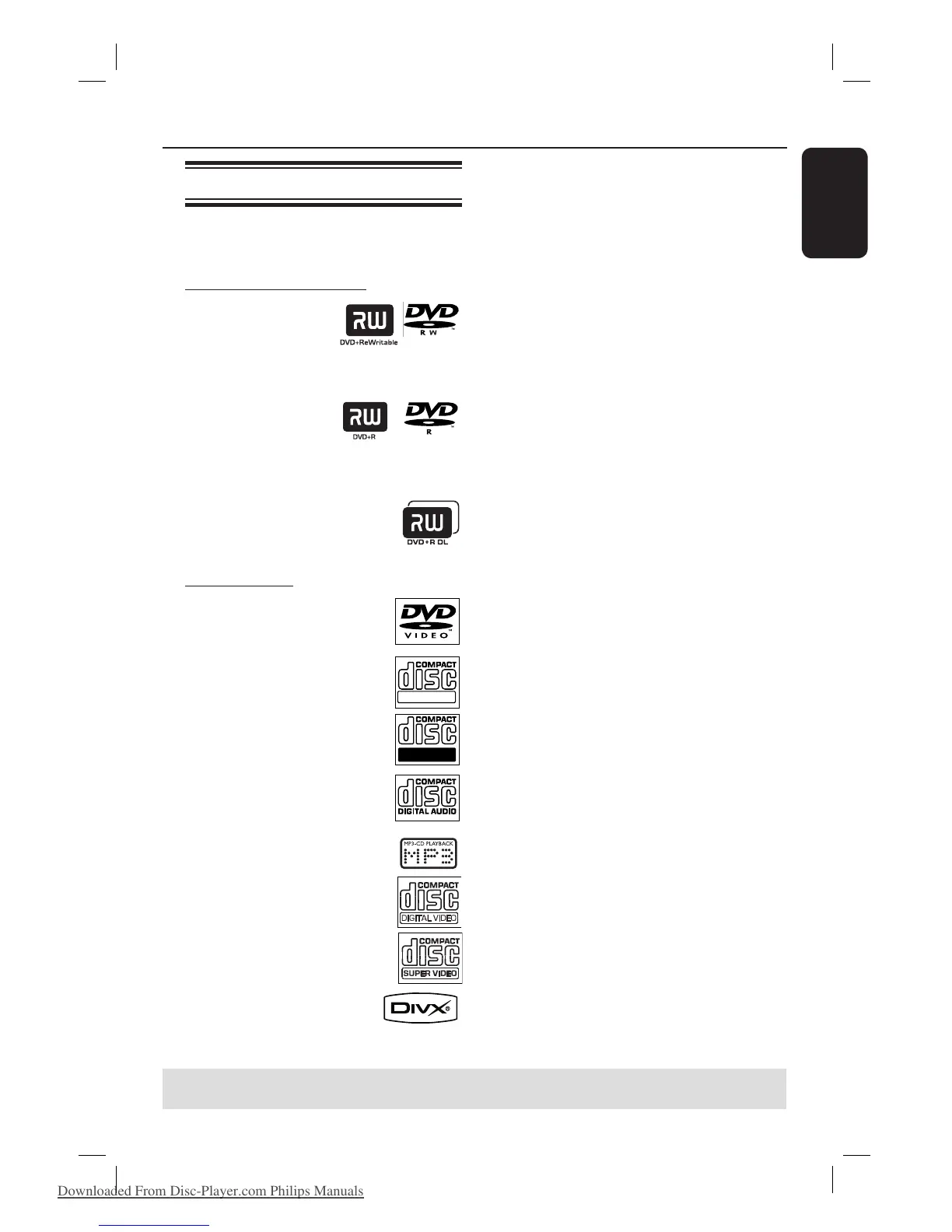 TIPS: Some discs cannot be played on this recorder due to the con guration and characteristics of