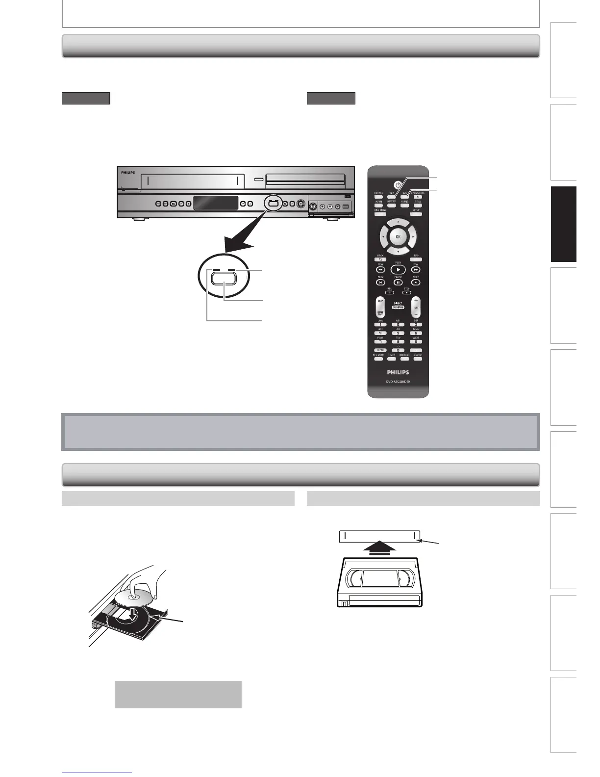 Because this product is a combination of a VCR and a DVD recorder, you must select first which component you wish