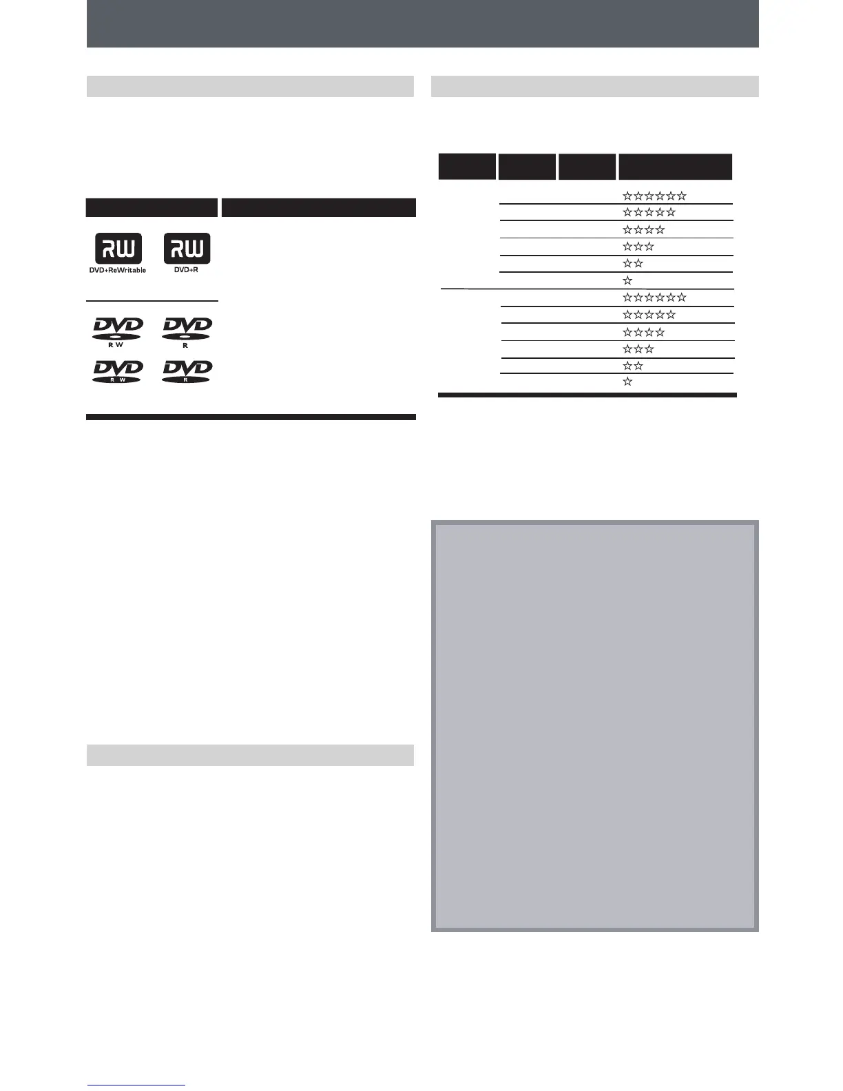• DVD+RW/+R, DVD-RW/-R and CD-RW/-R recorded on