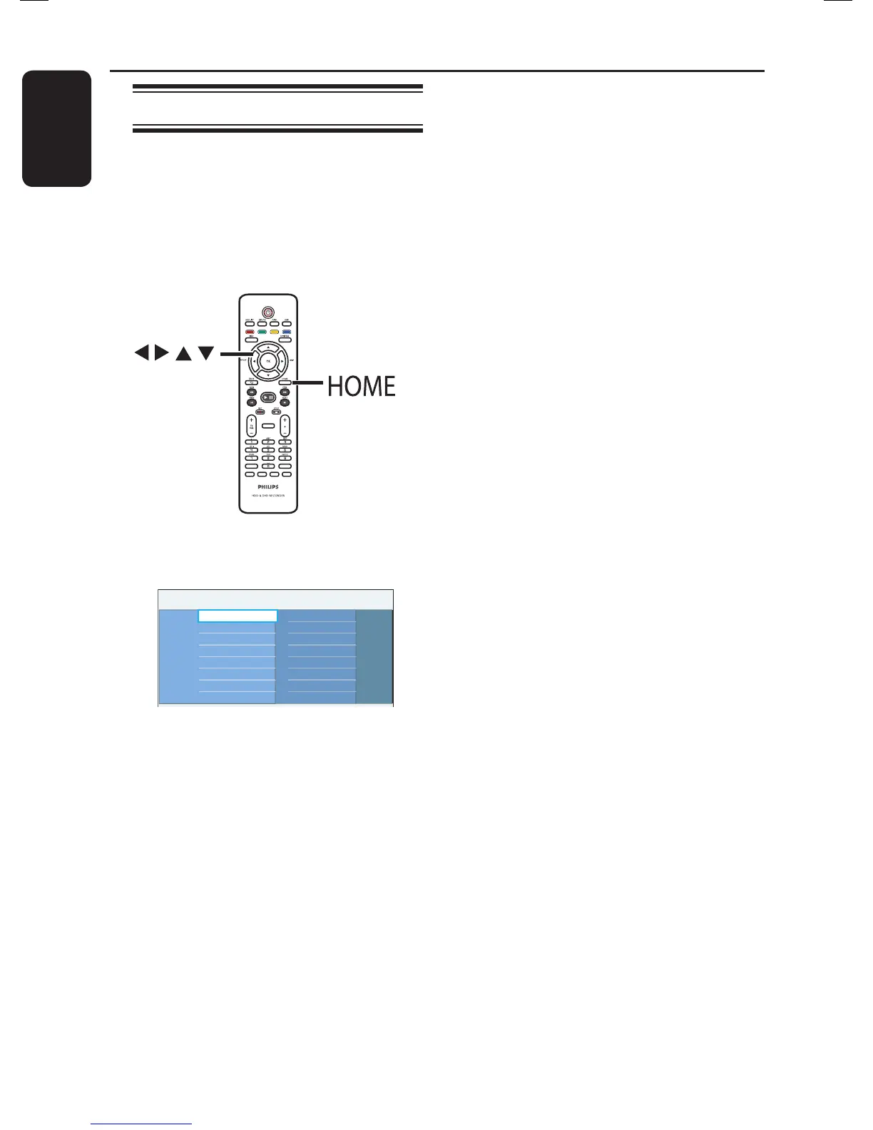 About the Home menu